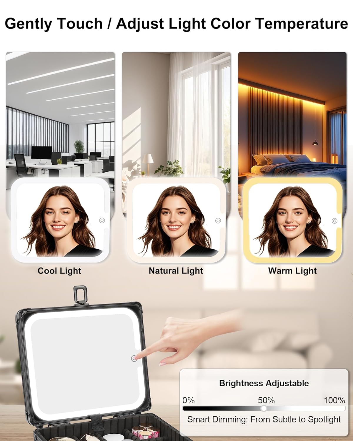 - 【Upgraded Ideal Gift】Travel Makeup Bag with LED Mirror is suitable for people who need short trips, also suitable for daily use, travel makeup case is a perfect gift for birthdays, Mother's Day, Valentine's Day, anniversaries, Halloween, Christmas, and more. Ideal as a gift for mom, yourself, wife, teacher, friends, or daughter