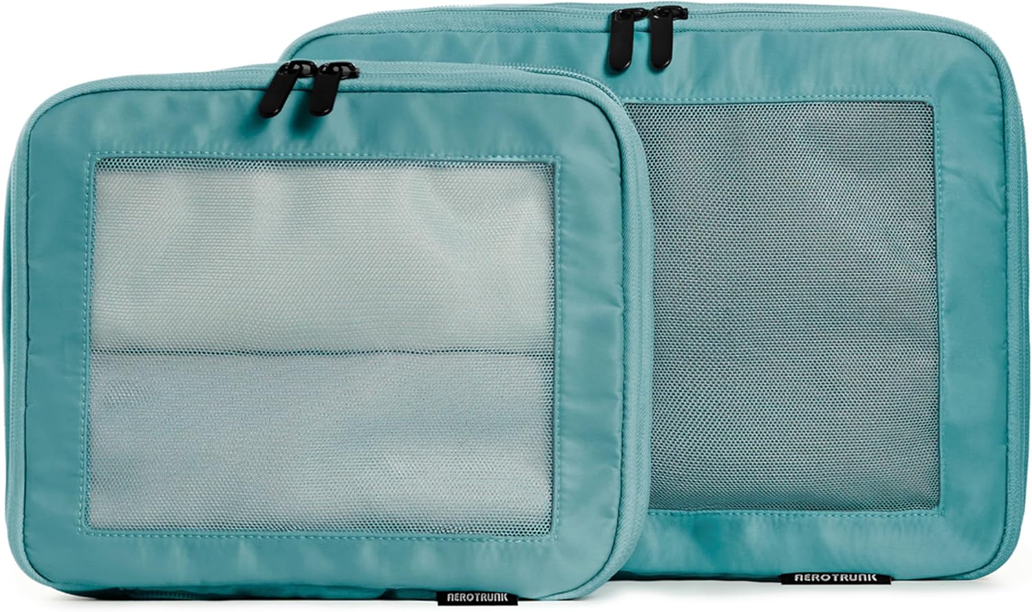 Compression Packing Cubes for Travel - Luggage Organizer Bags - Double Zipper Packing Cubes for Suitcases (2-Pack, Teal)