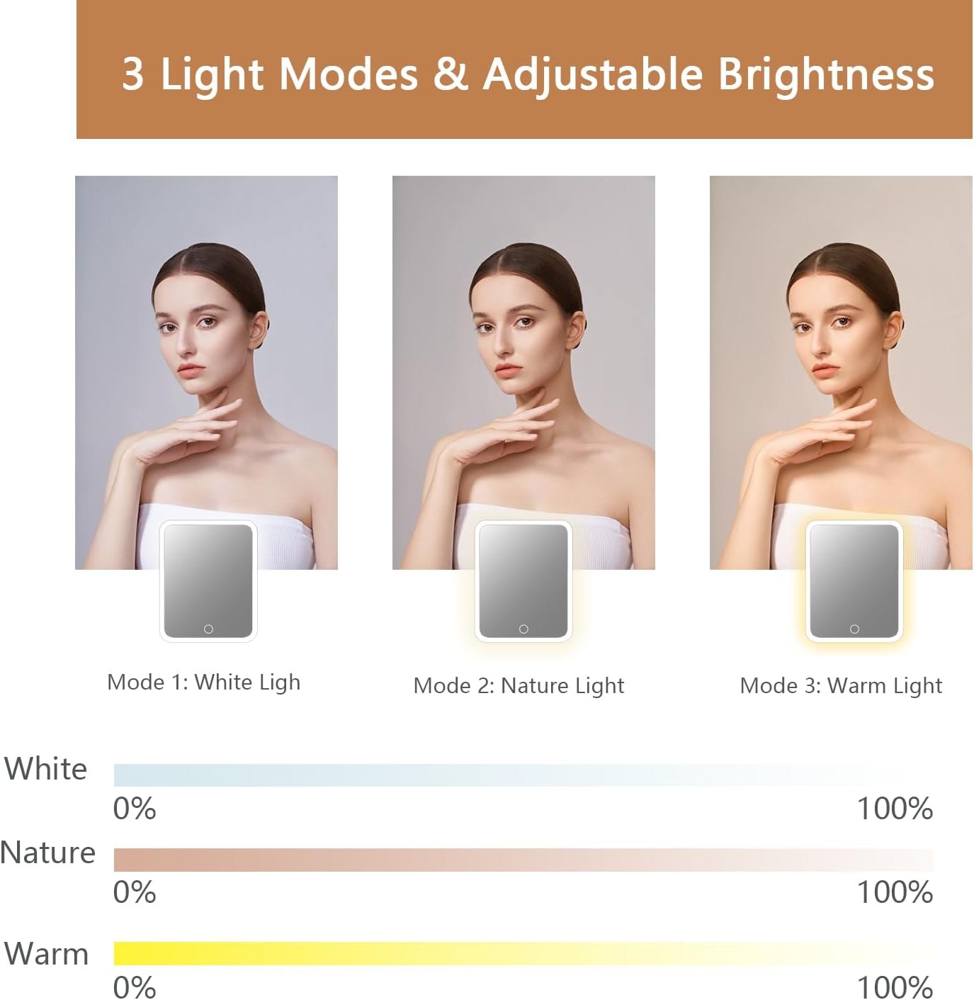 - 【makeup bag with led mirror】travel makeup bag is made of pu leather, waterproof and resistant, easy to clean.the travel makeup bag with of led light 3 color setting. 0-100% adjustable brightness that can be switched. with a long press on the switch, and a short press can adjust the color temperature between cool, natural and warm light.the make up bag can protect your cosmetics well, whether you are traveling or be away on official business, you can take your dresser everywhere.