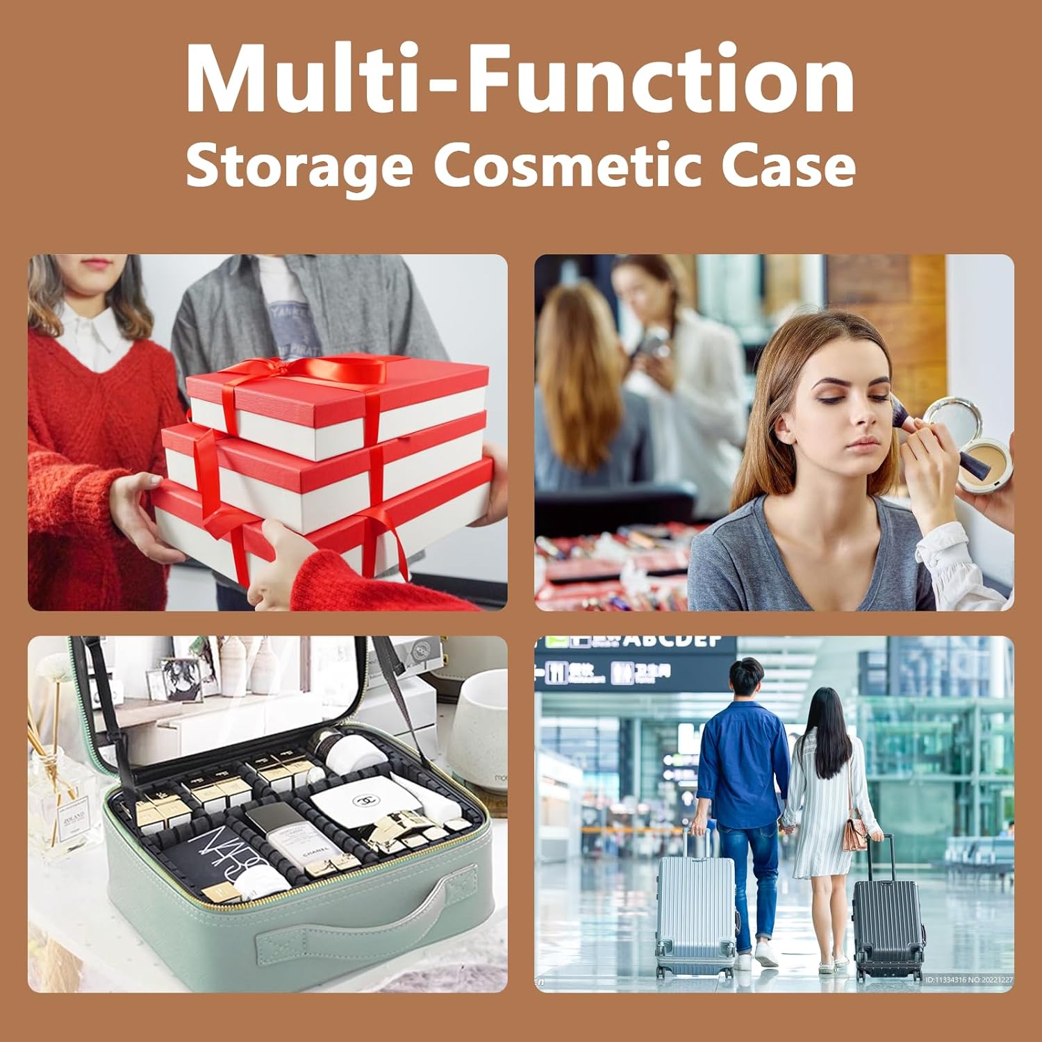 Travel Makeup Bag for Women and Makeup Artists Cosmetic Organizer Large Makeup Case,Travel Makeup Bag with Mirror 3 Color Setting,Portable Storage and Adjustable Dividers(CARAMEL COLOR)
