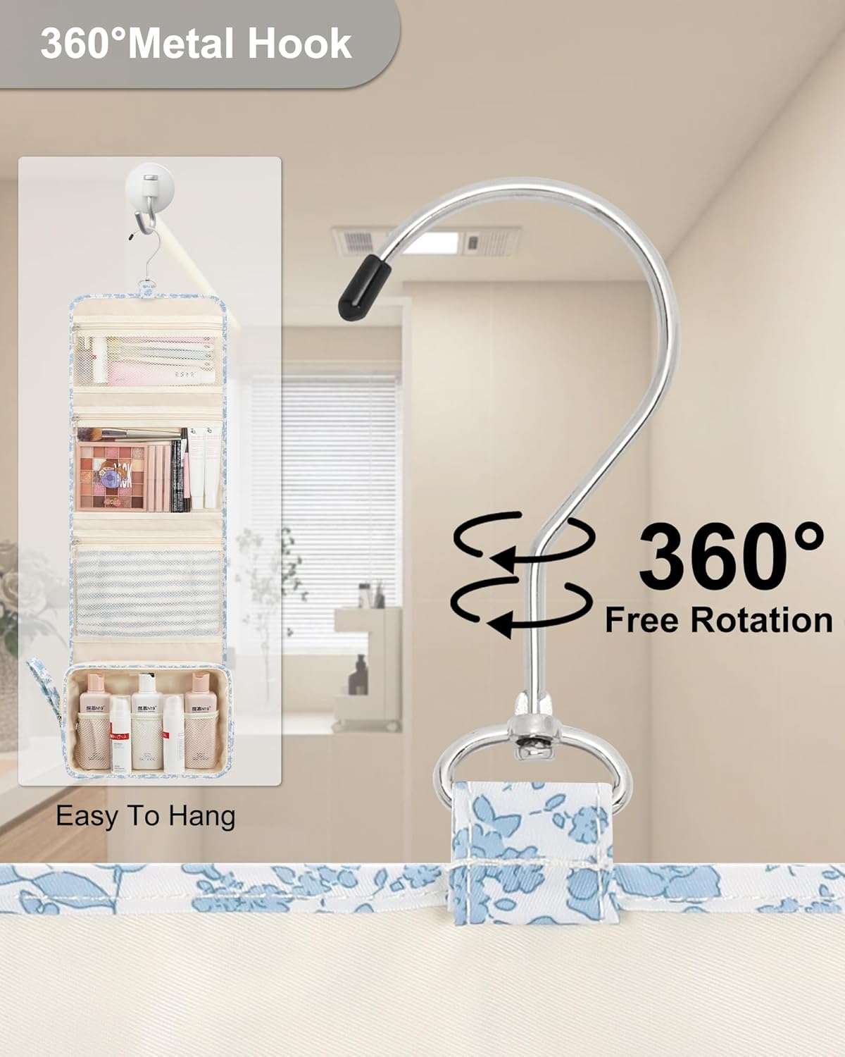 - 【360° ROTATION HANGING HOOK DESIGN】Stow-away 360 degree swivel non-slip metal hook for versatile hanging options. It fits bottles upright, helps eliminate spills, and makes a great travel organizer for your travel toiletries.