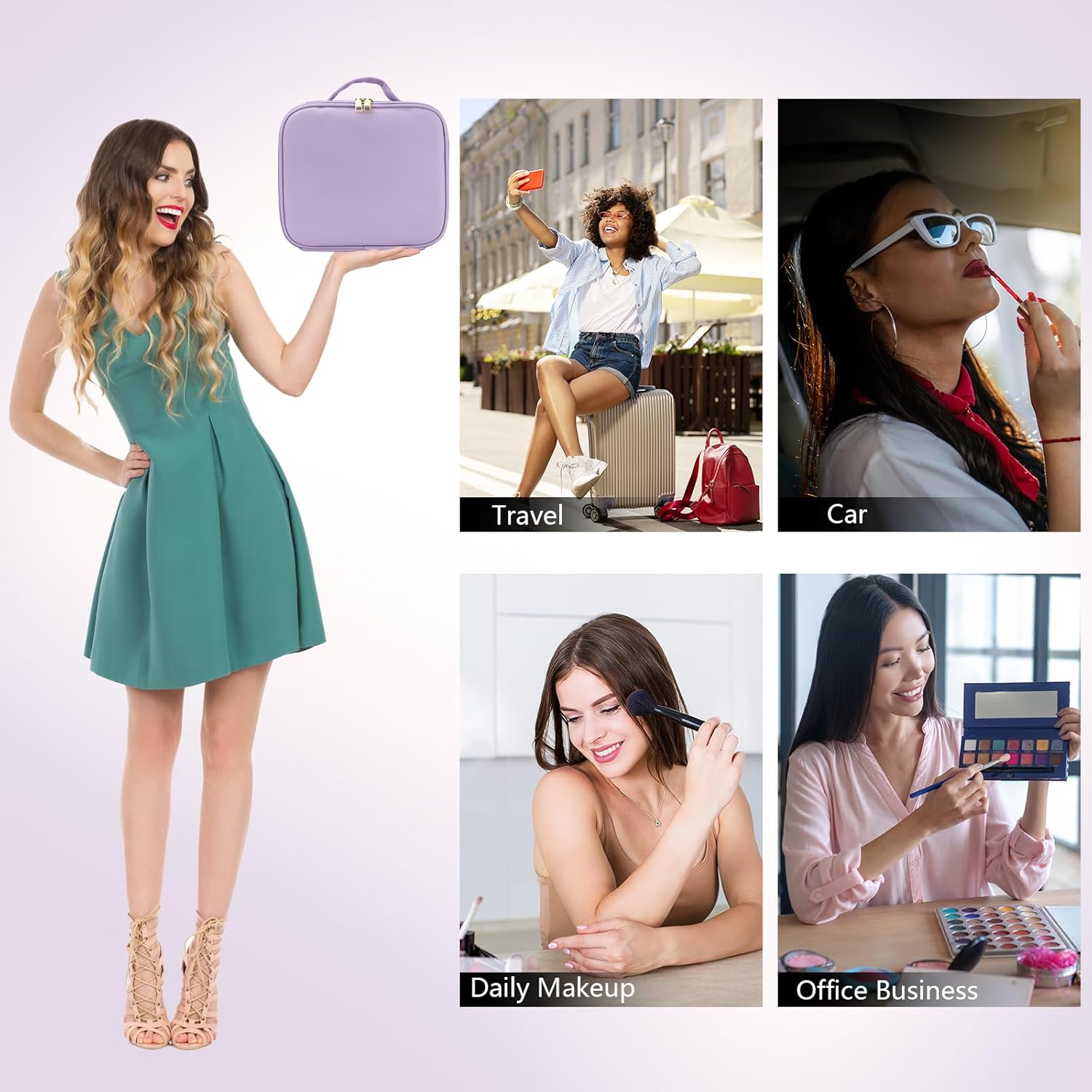 - 【Movable&Adjustable Dividers】The travel makeup bag is equipped with 6 different sizes of dividers, according to different cosmetics DIY different storage space, say goodbye to the messy travel makeup organizer, can well protect cosmetics from damage and leakage. Comes with a separate makeup brush storage bag to keep the travel makeup bag clean and dry.