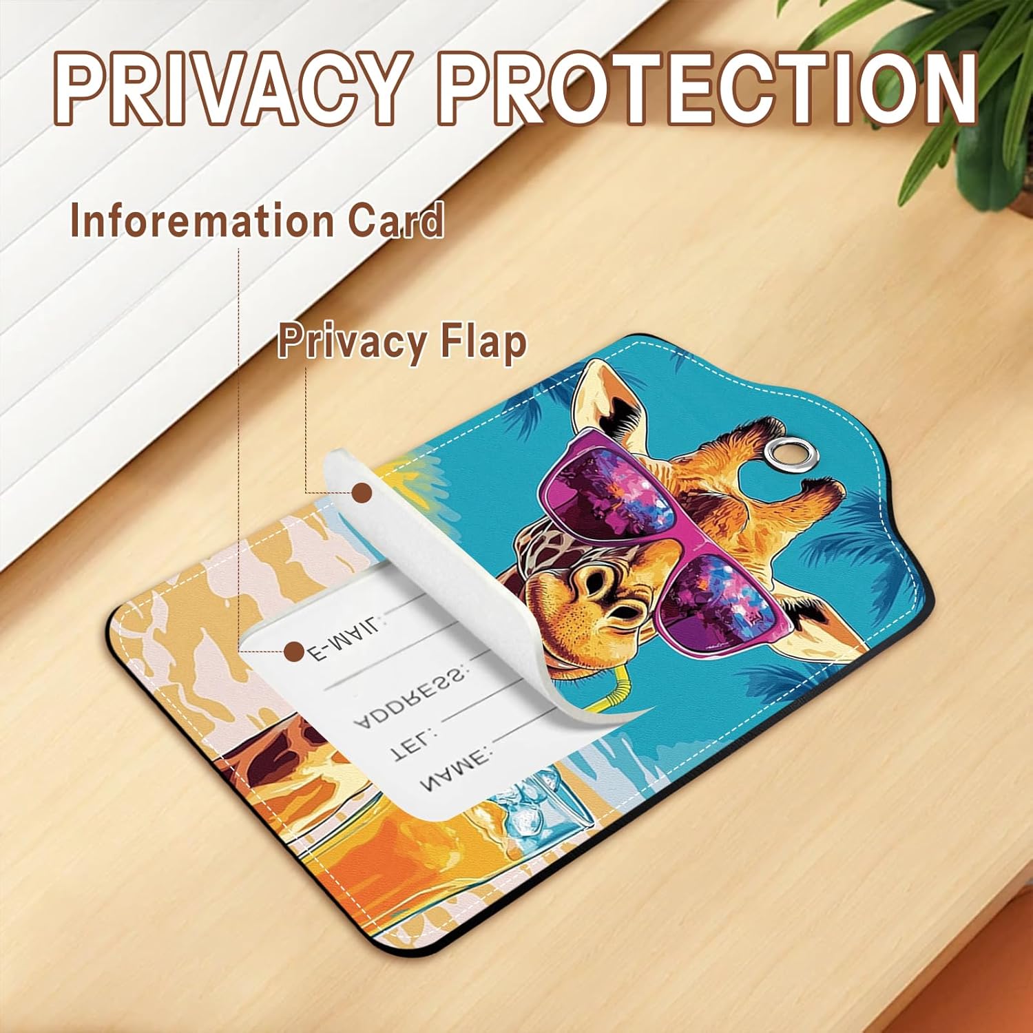 - 【Theme Design】Designed with a giraffe print, these travel tags for luggage add personality to your bags. The high-quality double-sided printing remains vibrant over time, making it easier to identify your suitcase at a glance.