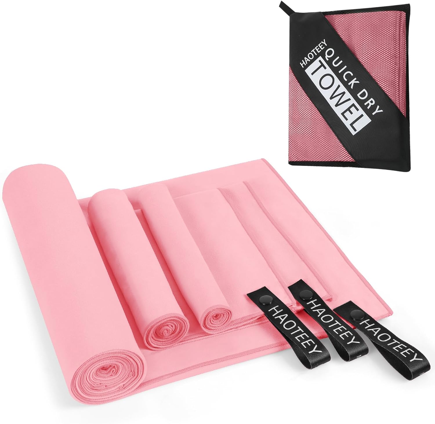 Quick Dry Travel Towel, 3 Sizes 1 Pack Camping Microfiber Towel, Lightweight Fast Drying Towels Set 60"x30", 30"x15", 15"x15" w/Bag for Gym, Beach, Hiking, Swimming, Pink