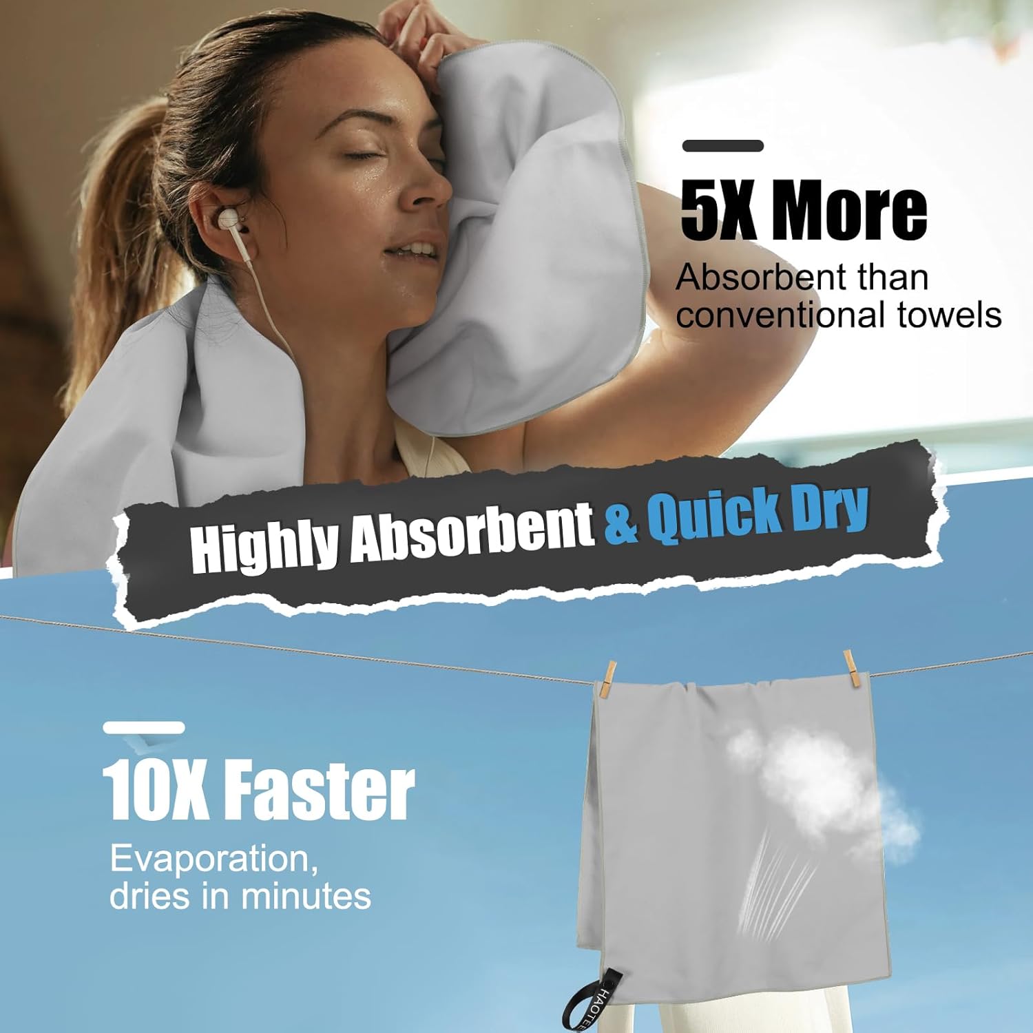 - HIGHLY ABSORBENT: Our camping towels are crafted with ultra-fine microfiber that is soft and comfortable to touch, and no funny smells. The gym towels soak up to 5x water, no matter sweat or water on the body. Machine-washable without shedding fibers, durable enough for years of use
