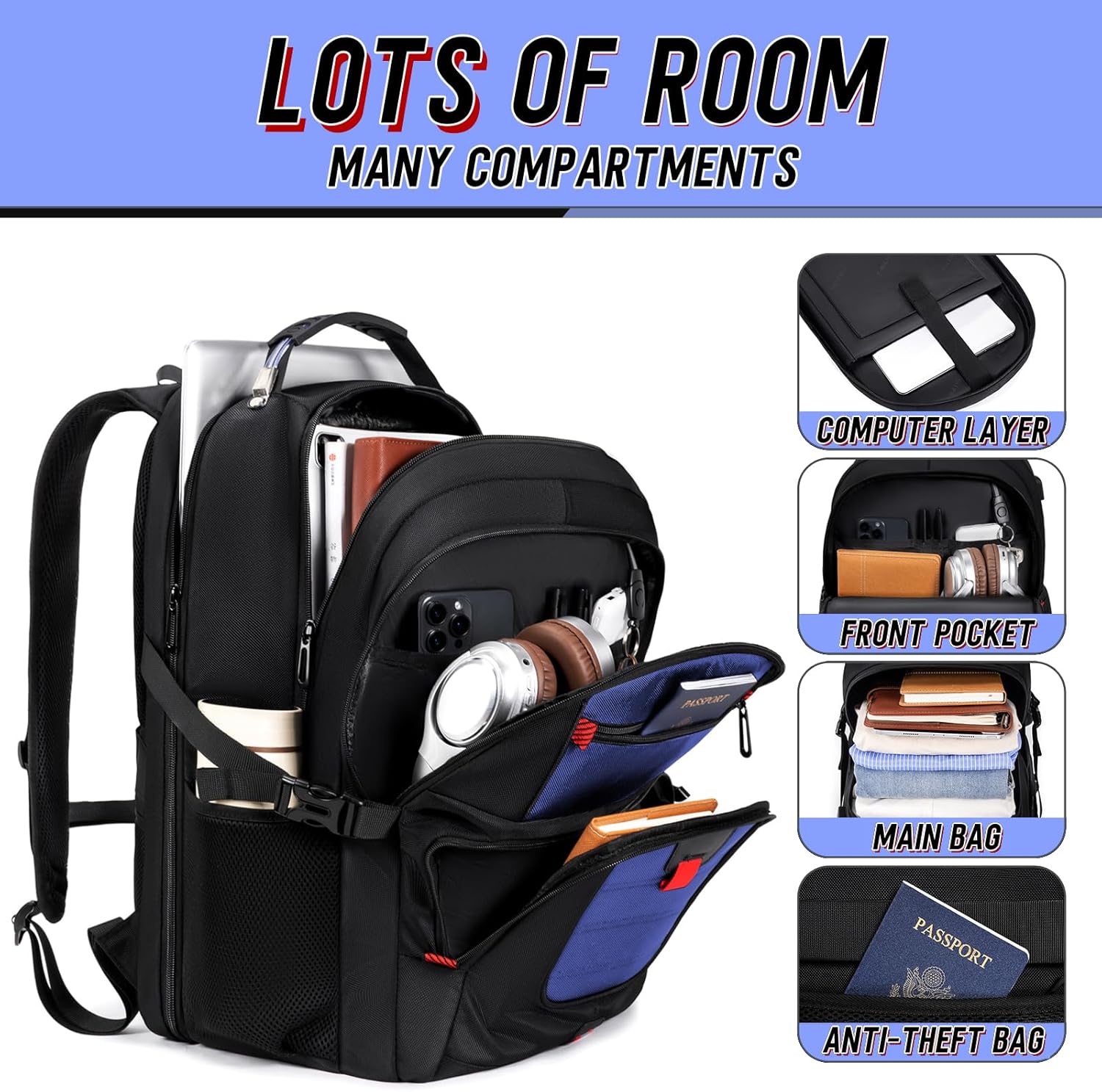 - 【Large Capacity and Organized】: Men travel backpack owns 20 independent pockets for storing large items and organizing small items. 3 spacious main multi compartments with many hidden pockets can accommodate lots of stuffs like travel accessories, clothes, notebook, cord organizer, side deep Zipper pocket for Easy access essentials, side Elastic net pockets conveniently hold travel gear umbrellas or water bottles.
