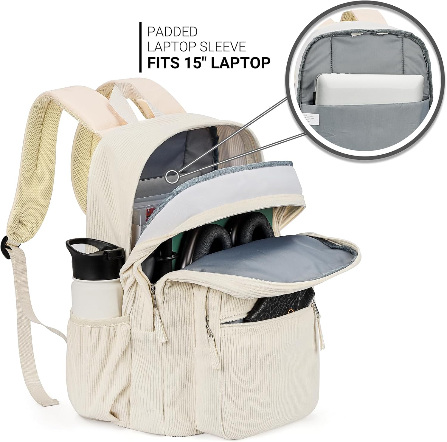 ZORFIN 26L Backpack for College, and Travel: Corduroy Bookbag - Vintage Lace