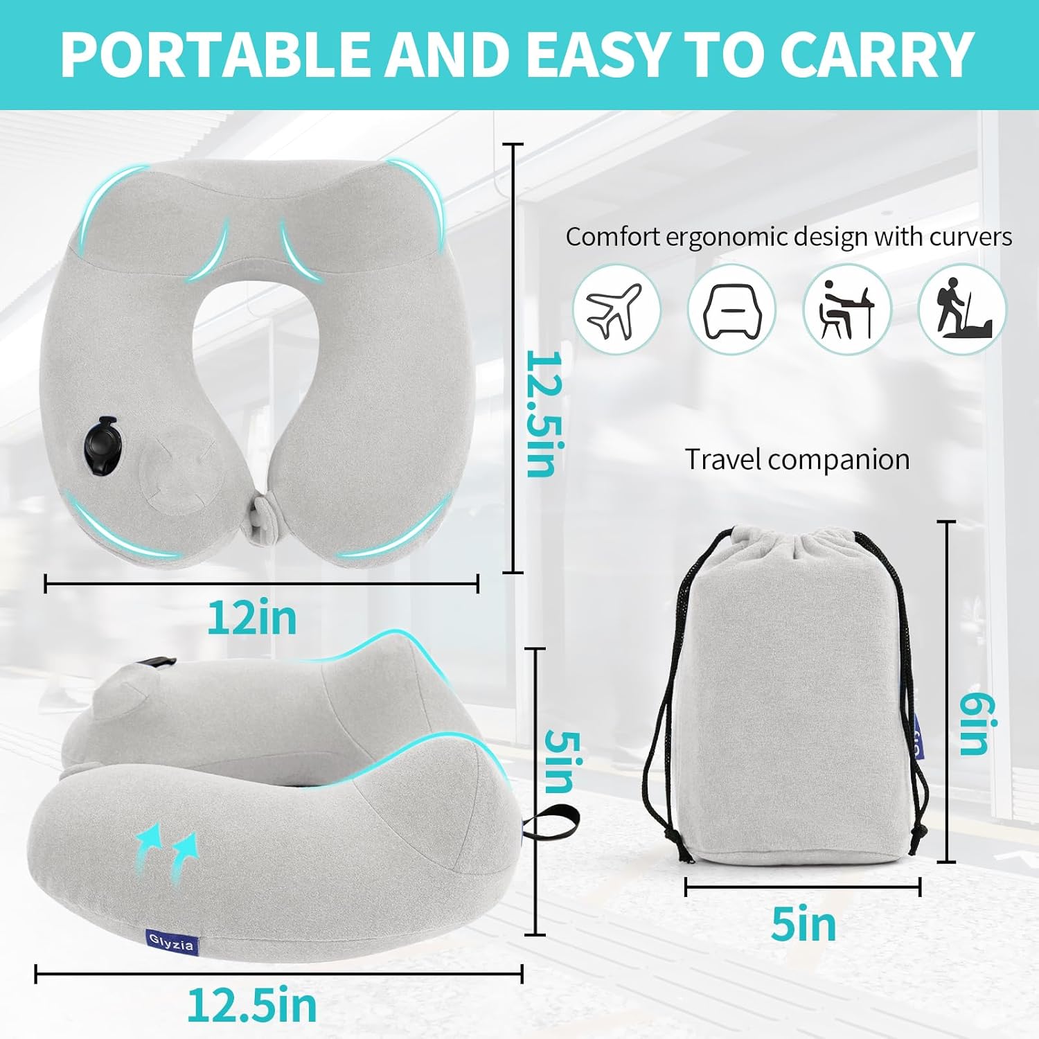 - 【Effortless Inflation – No Blowing Required】Simply press the built-in pump repeatedly until you reach your desired firmness—no need to blow into it. Deflation is just as quick, taking only 10-20 seconds to flatten and store. The adjustable front clasp allows you to customize the fit, making it suitable for travelers of all sizes.