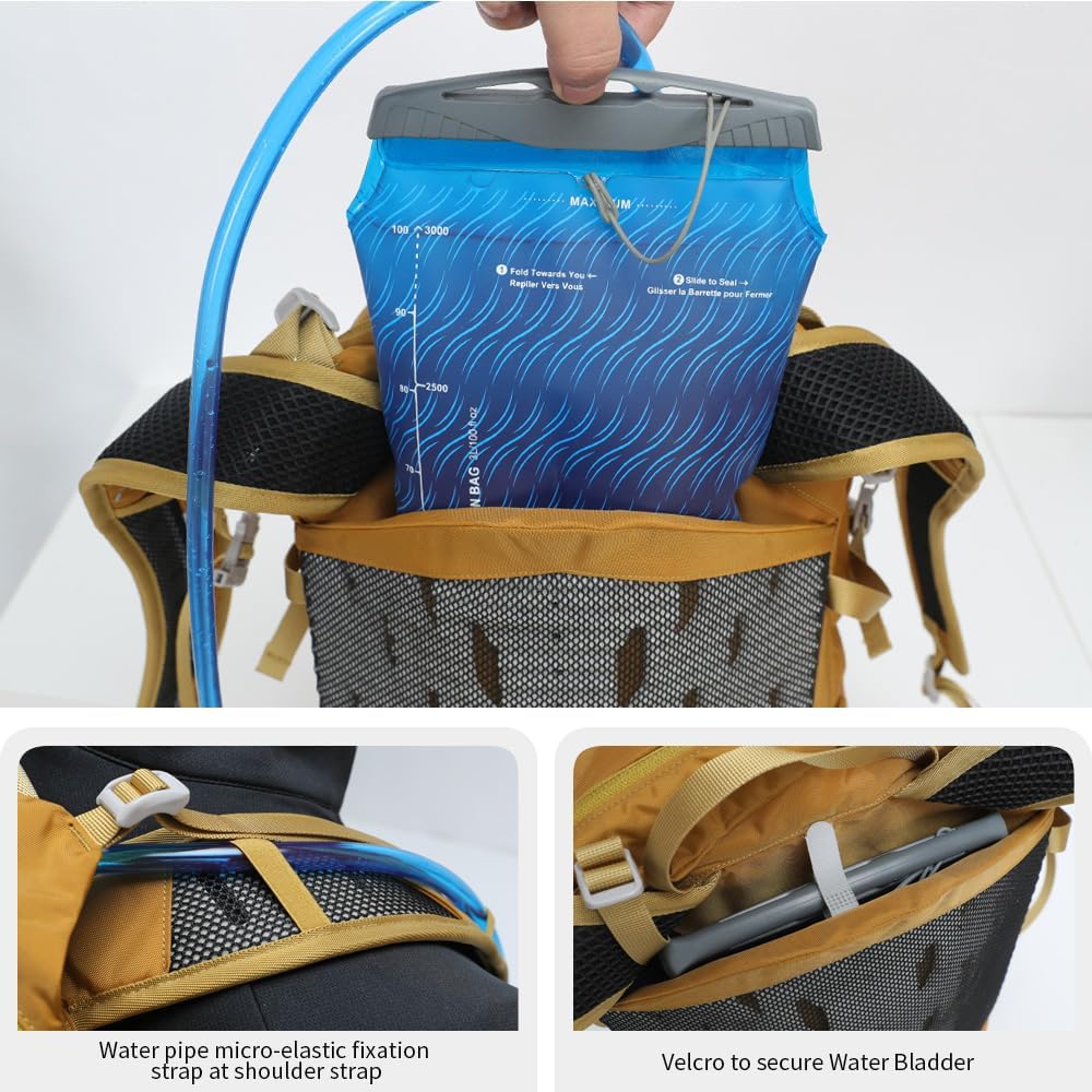 - 【3L Leak-proof Water Bladder】The IX INOXTO Hiking Hydration Backpack comes with a 3 liter hydration water bladder. A switch valve and a cover cap make double leak-proof. Large opening allows quick filling of water and ice and it is easy to clean, the water line (40"length,0.4"diameter) provides a wholesome flow for easy drinking, the water temperature is range -20~+50℃. With this large-capacity hydration bladder, you can keep hydrated and active all day throughout your adventure.