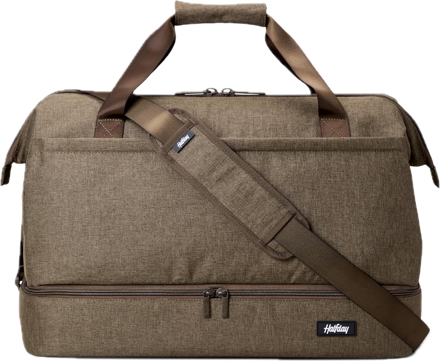 Halfday Double Decker Weekender Bag 40L | Designed for Easy Packing & Storage (Padded Strap, Zippered Bottom Compartment, Interior Mesh Pockets, Trolley Sleeve, Water-Resistant Fabric), Dune
