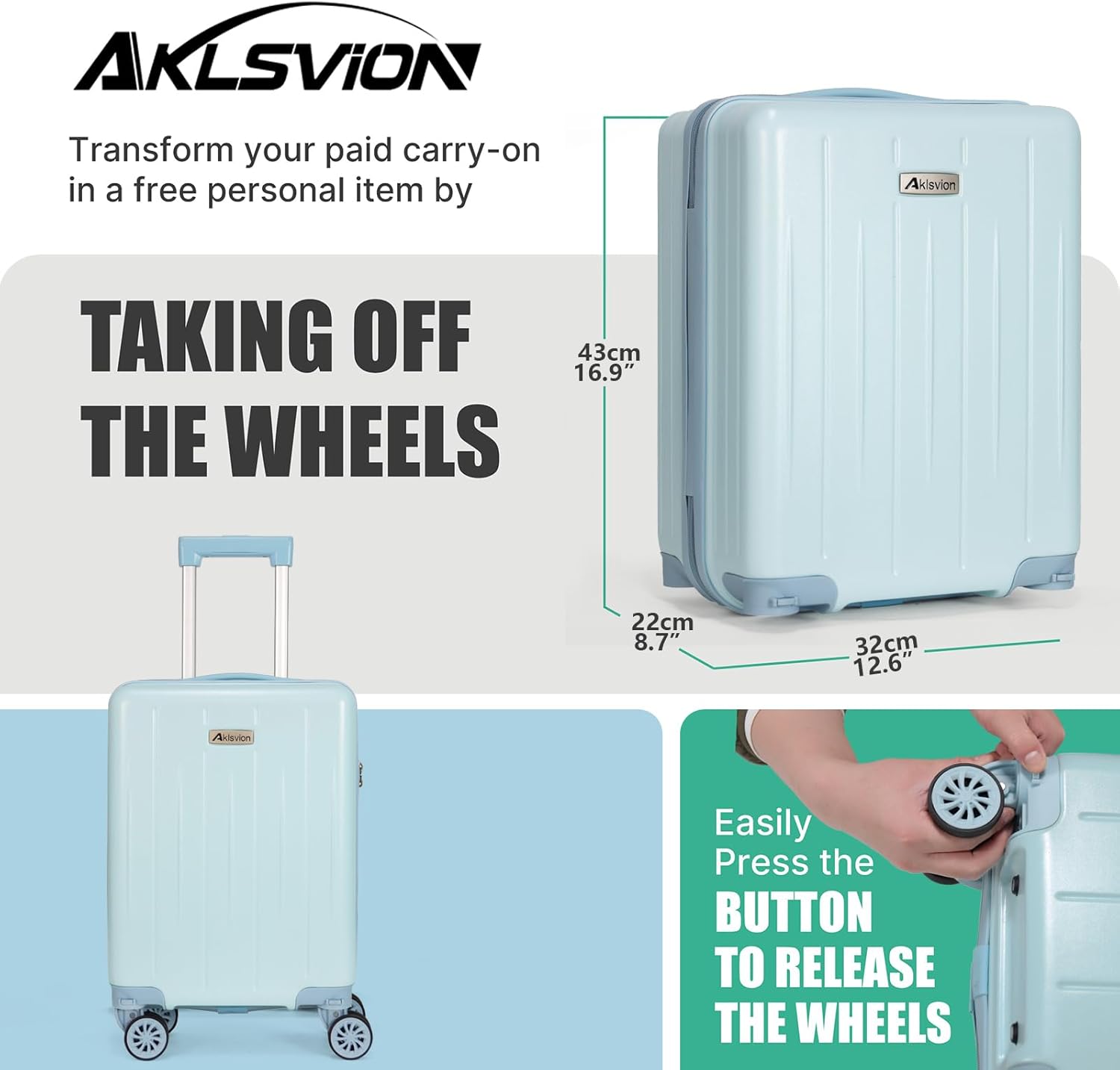18-inch Carry-on Boarding Luggage: Equipped with Movable Wheels, TSA Approved,Under the Seat, Hard Shell Construction, Lightweight Bag with Essential Accessories (Baby Blue)