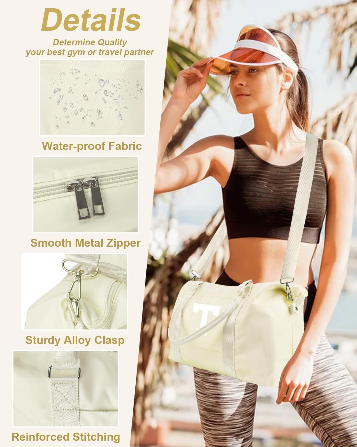 Initial Travel Duffel Bag Sports Gym Bag for Kids Teen Birthday Gifts,Beige Personalized Weekender Bag Carry On Dance Bags for Women Men,Waterproof Monogram Overnight Bag with Trolley Sleeve(Letter T)