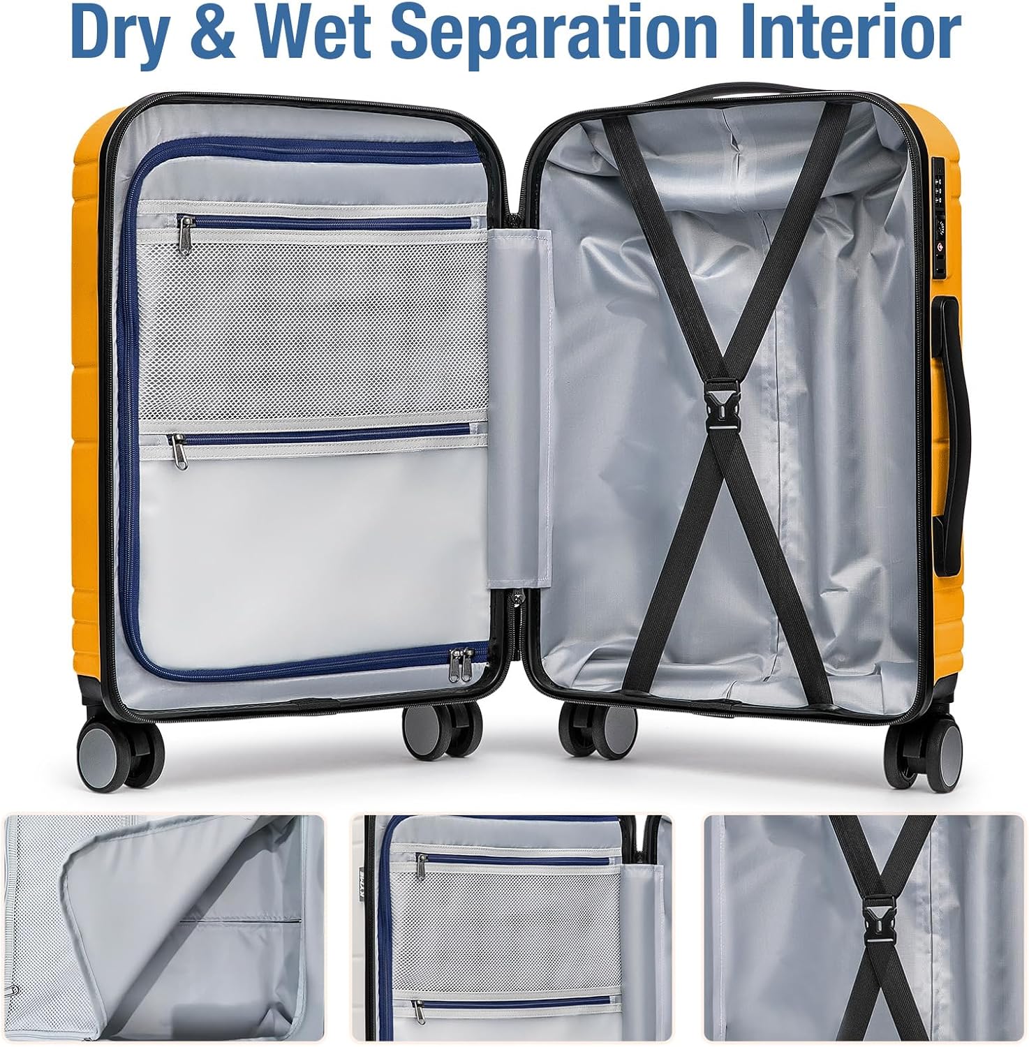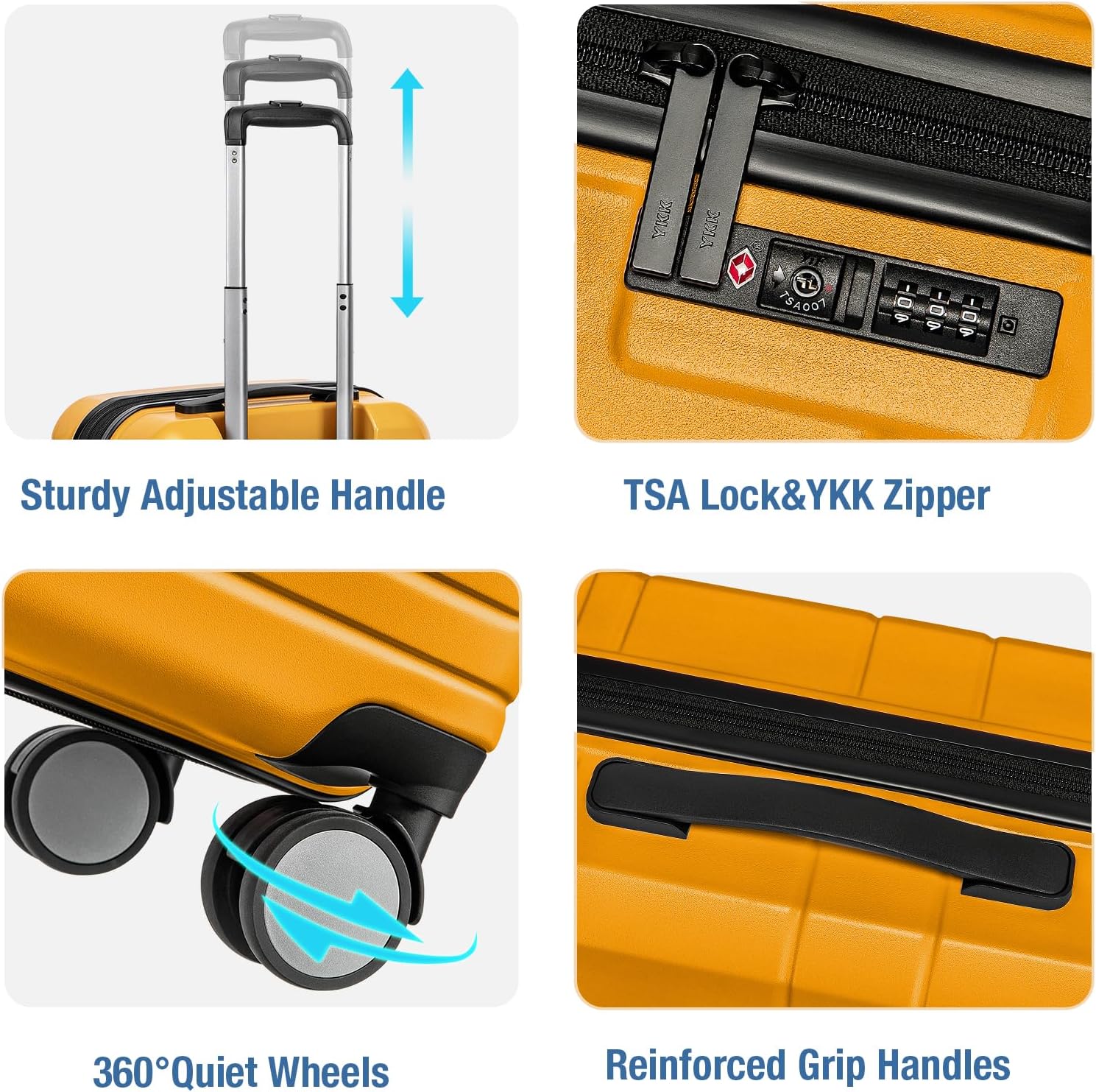 KYME Carry On Luggage 22x14x9 Airline Approved with TSA Lock Hard Shell Carry On Suitcase Lightweight Suitcases with Wheels Small Luggage for Men Women,Carry-On 20 Inch,Yellow