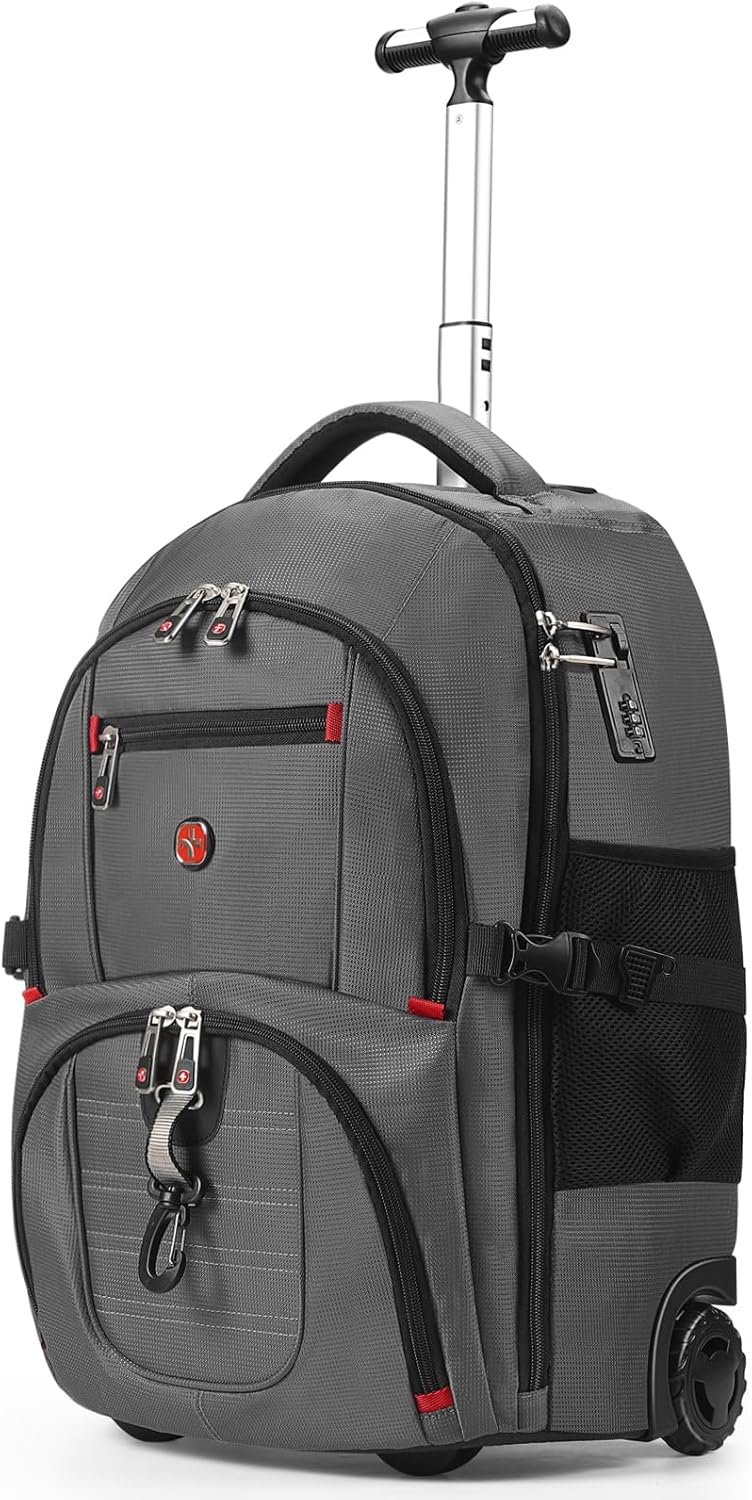 - PROTECTIVE MATERIAL: This wheeled backpack is well made of durable, tear and dirt-resistant polyester fabric. The rolling backpack luggage includes a plastic panel corner guard at the bottom and a back cover cushion designed for strong rubber wheel protection. Every compartment has sturdy, lockable zippers that greatly secure your valuable items, making it the best choice for Mother's Day, teachers, birthdays, and travel enthusiasts alike.