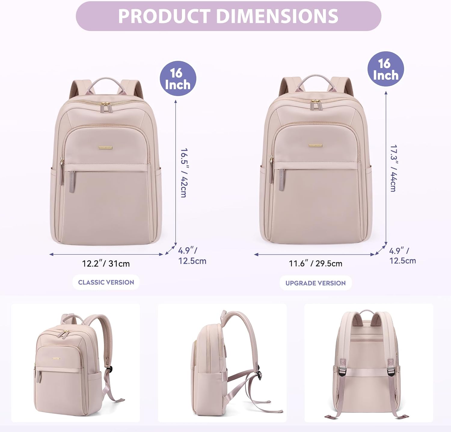- 【Upgraded Fabric】Durable and waterproof, made of splash-proof Oxford fabric and premium superfiber synthetic leather, this travel backpack ensures your items stay dry and prevents any leaks or moisture from affecting your other items, and this laptop bag can withstand daily wear and tear, reinforced stitching ensures long-lasting durability.carry on backpack for women