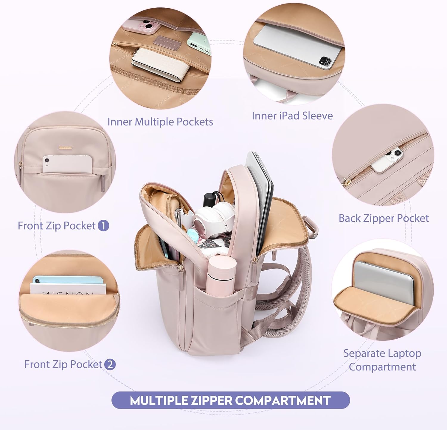 Hiking Travel Backpack for Women Casual Business Weekender Multilayer Laptop Bag,16 Inch,Pink