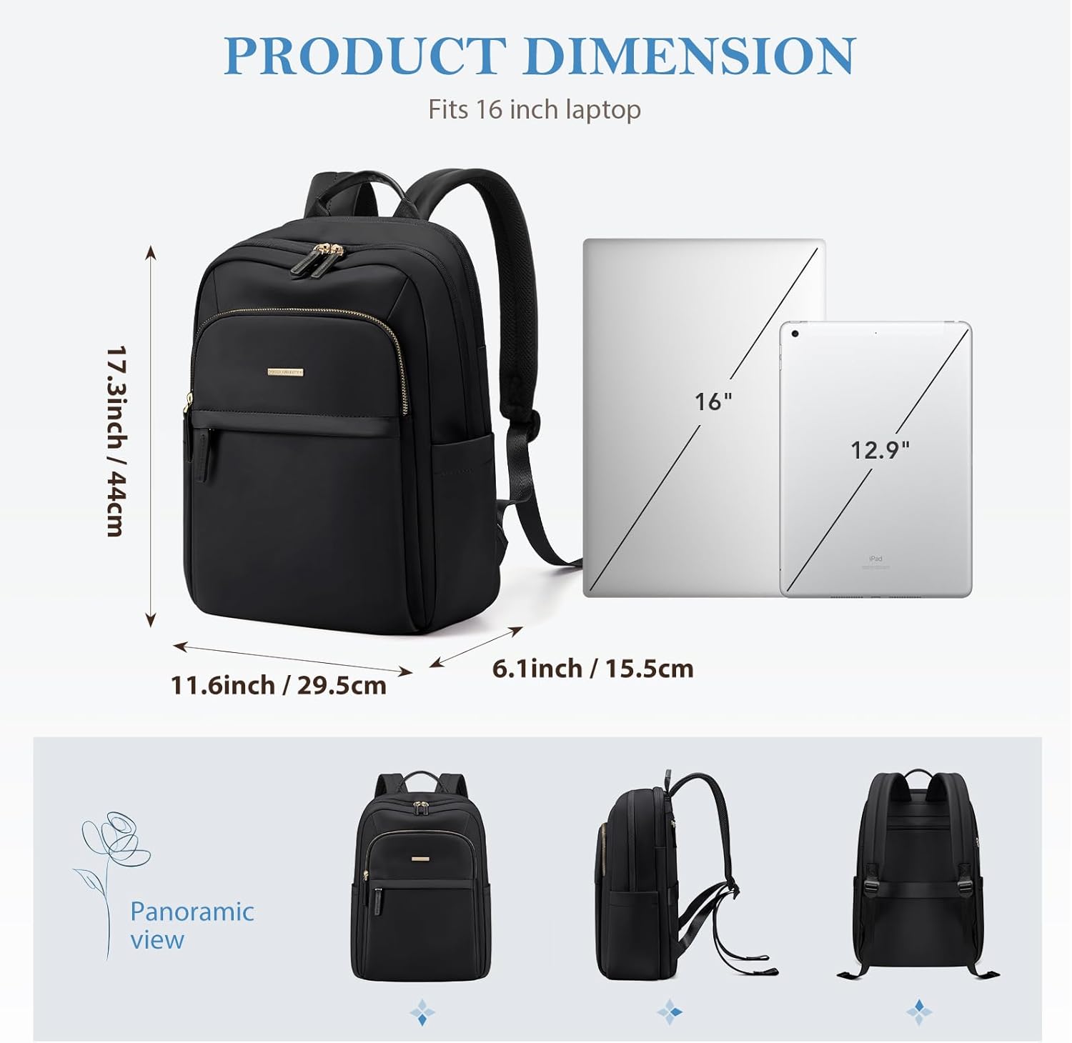 Travel Backpack for Women Personal Carry On Bag Business Weekender Hiking Multilayer Laptop Bag,16 Inch,Black