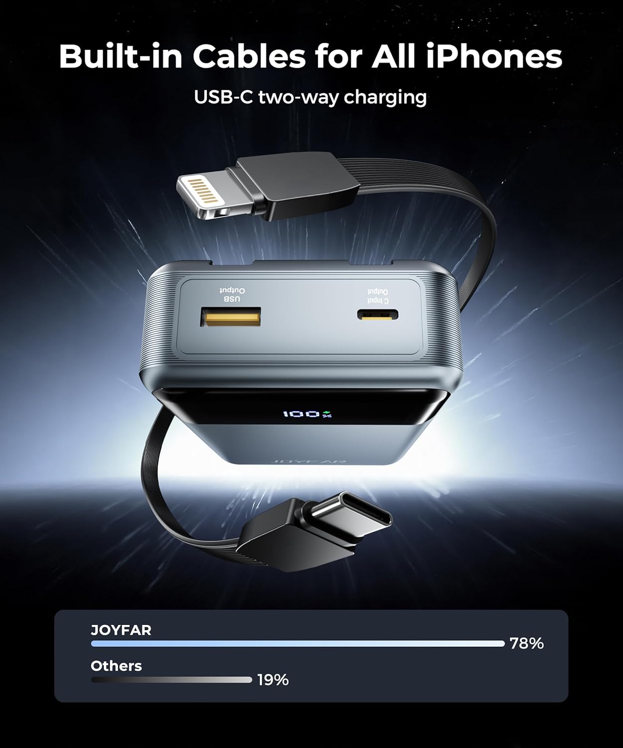 - 【Reliable After-Sales Service】The JOYFAR portable charger is backed by UL, UN, FCC, TUV, MSDS, and RoHS certifications. Enjoy peace of mind with 36 months, 24/7 professional customer support, and easy replacements on Amazon. We are dedicated to providing satisfactory solutions for any issues you may encounter. What You Get—1 x JOYFAR power bank, 1 x user manual, 1 x 0.98 ft USB-A to USB-C charging cord (wall charger block not included)