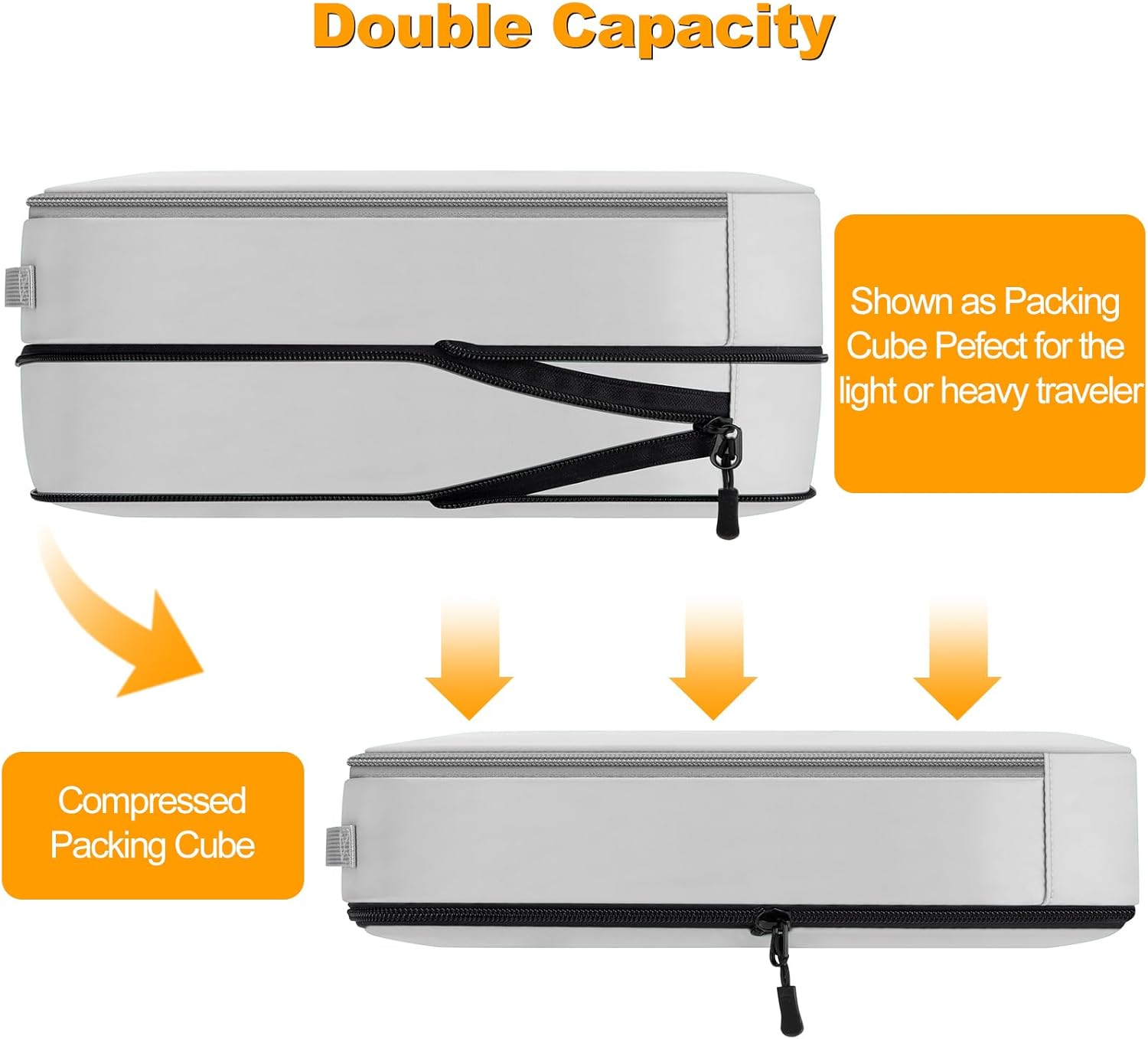 - Advanced Compression Technology – Saves 50% Space:Designed with double-layer zippers, these packing cubes compress clothes efficiently, reducing volume by up to 50%. Easily pack bulky items like jackets, sweaters, or workout gear while keeping them neatly organized. Perfect for minimalist travelers, backpackers, and business professionals who need extra space!