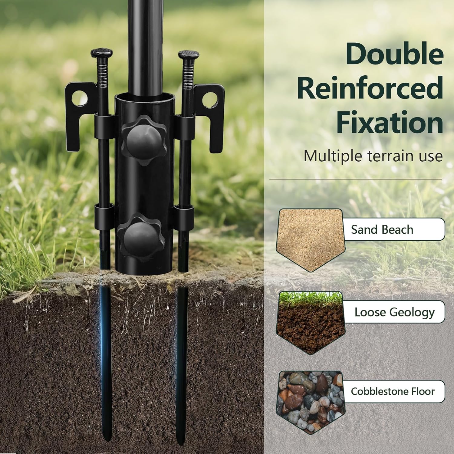 - Double Stability: Our camping canopy is equipped with two retainers for a stable setup on a variety of complex terrains, including sand, gravel, and soft ground. It stays in place without collapsing, even in strong winds and heavy rain, to ensure you have a safe and secure camping environment
