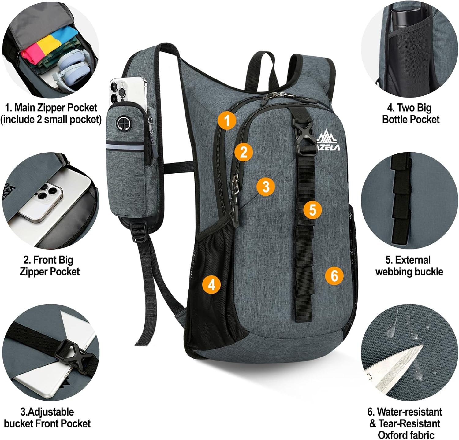 - 【Unique Shoulder Strap Design】The zippered pocket on the left shoulder strap will hold a cell phone screen up to 7 inches, and on the right shoulder strap is an anti-theft pocket with an elastic cord closure, so you can put some items such as a wallet and snacks. The breathable mesh shoulder straps ensure comfort during your outdoor adventures, while reinforced stress points prevent strap breakage.