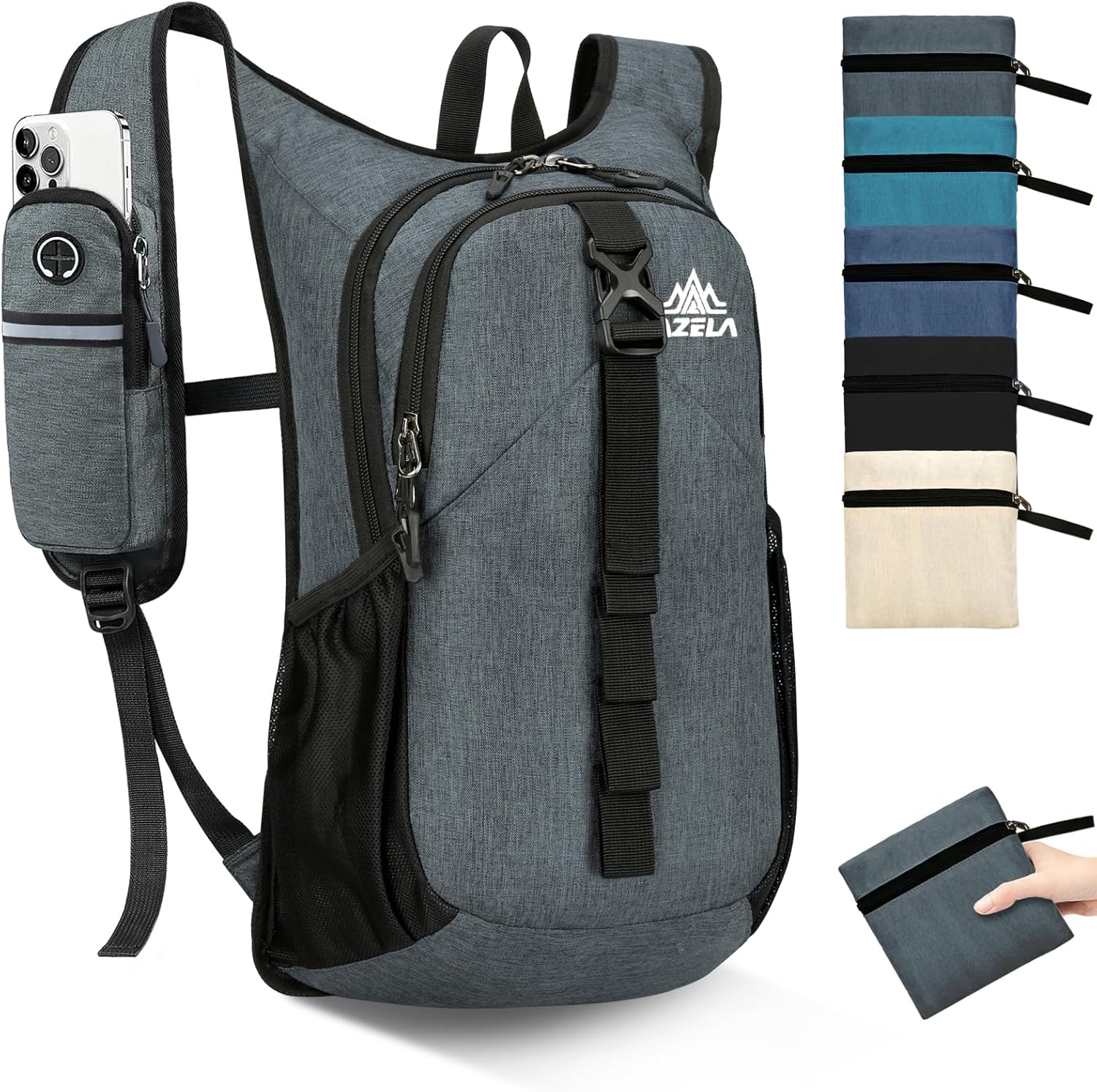 Seektop 15L Small Hiking Backpack for Women Men, Foldable Packable Backpack with Phone Pocket, Lightweight Travel Daypack for Hiking Camping Outdoor (Gray)