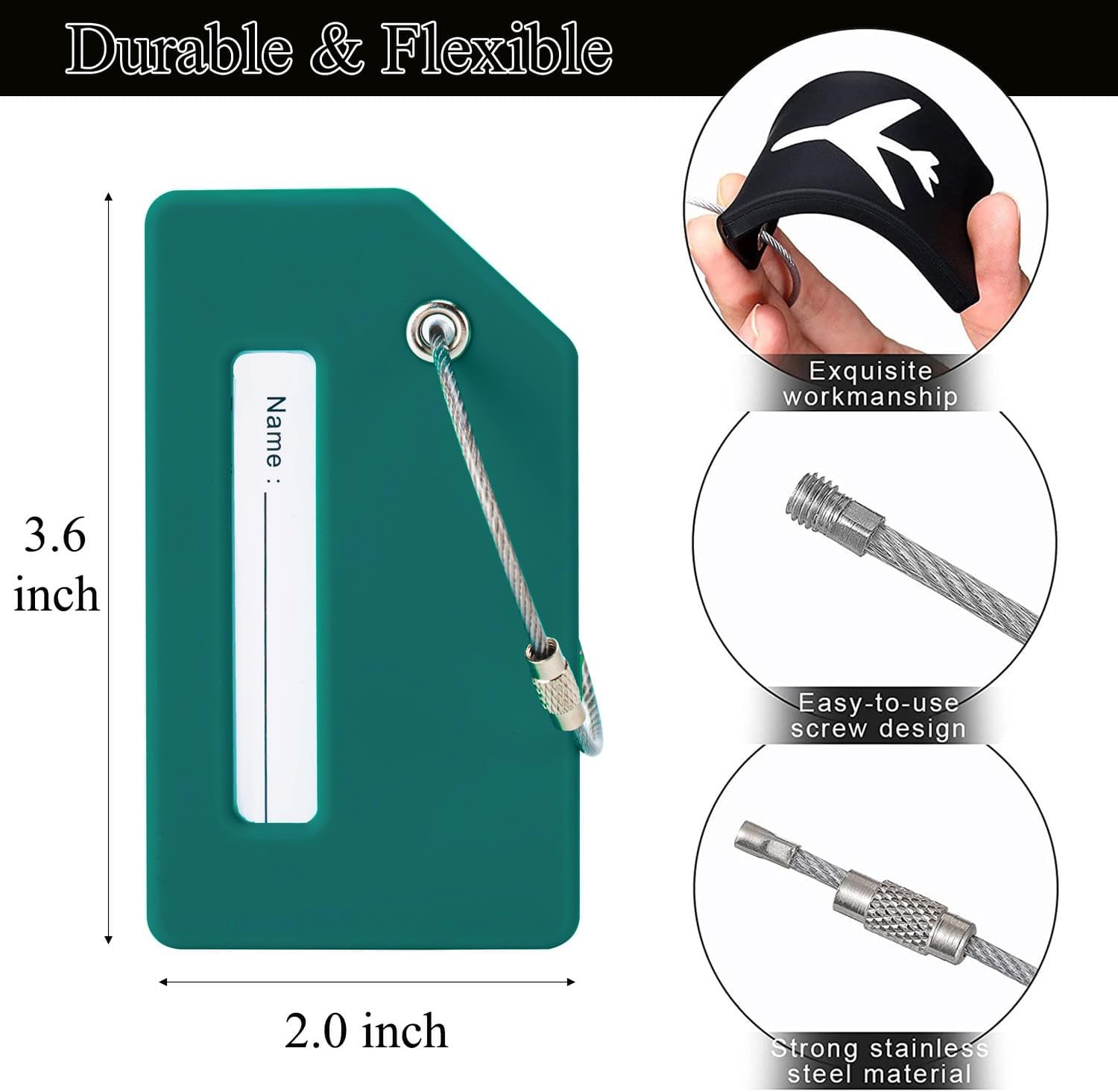 7 Pack Silicone Luggage Tag for Suitcases with Name ID Card, TSA Approved, Privacy Protection Travel Suitcase Tags (Peacock Green)