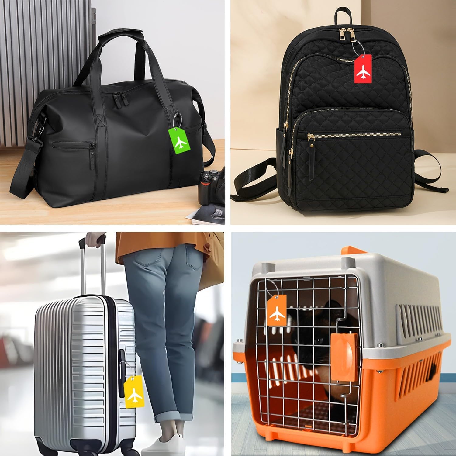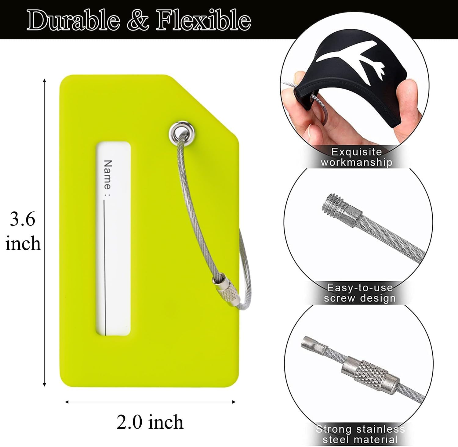 7 Pack Silicone Luggage Tag for Suitcases with Name ID Card, TSA Approved, Privacy Protection Travel Suitcase Tags (Grass Green)