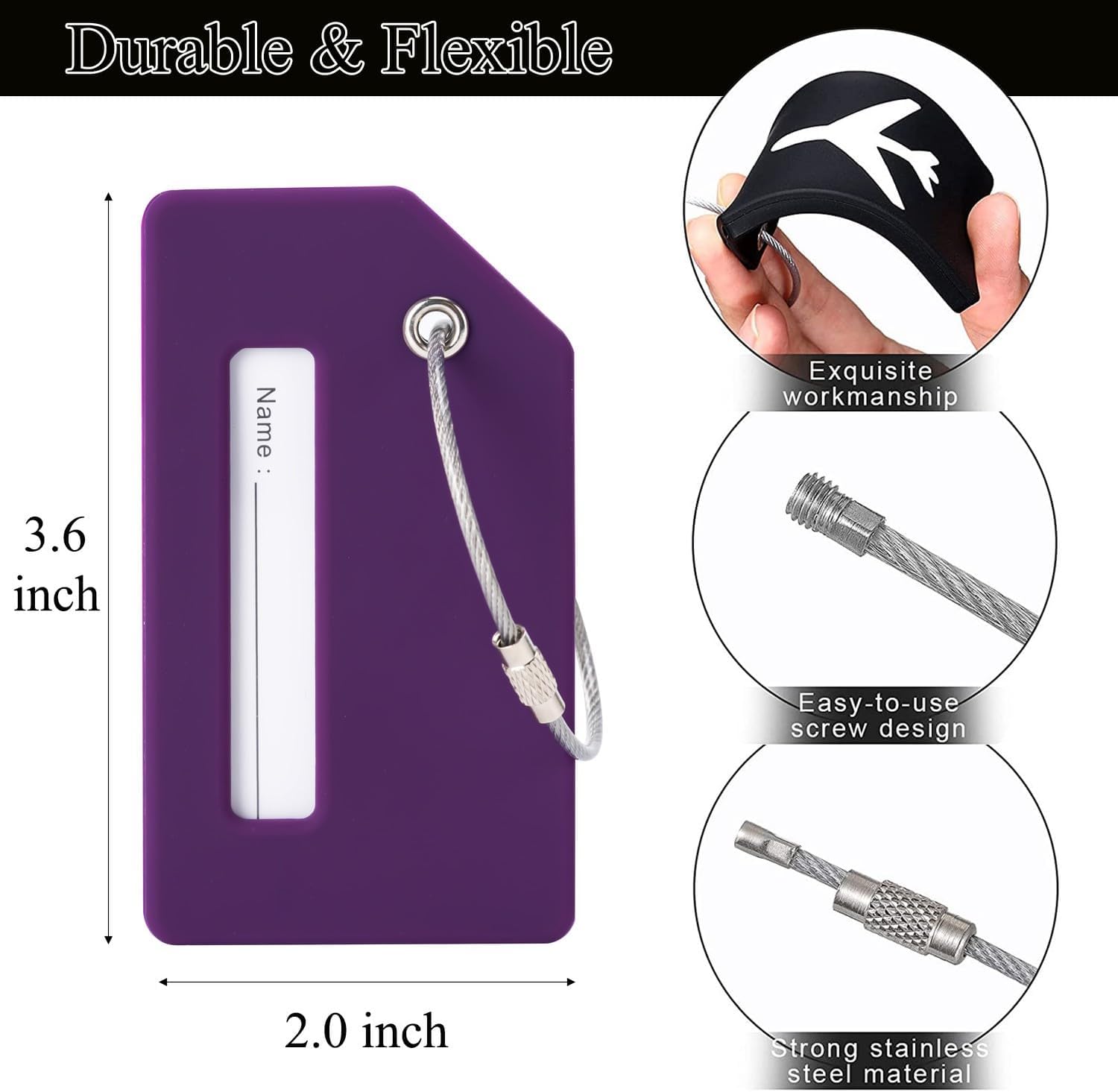 - 【Flexible & Durable】Our luggage tags Made of quality durable Silicone ability to bend without breaking. The reinformed metal hoop will ensure that your bag tags will be attached to your belongs all the time.