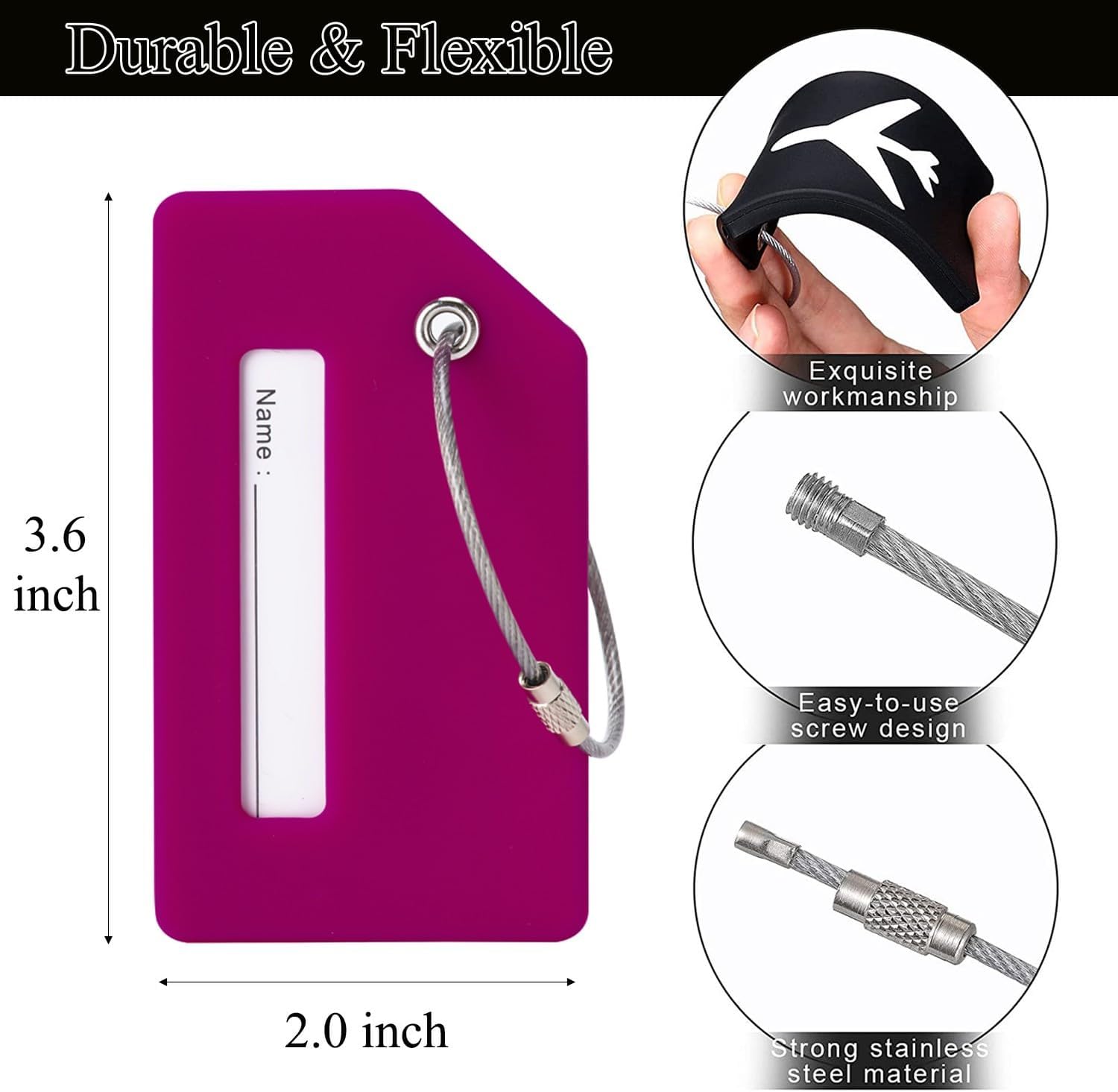 - 【Flexible & Durable】Our luggage tags Made of quality durable Silicone ability to bend without breaking. The reinformed metal hoop will ensure that your bag tags will be attached to your belongs all the time.