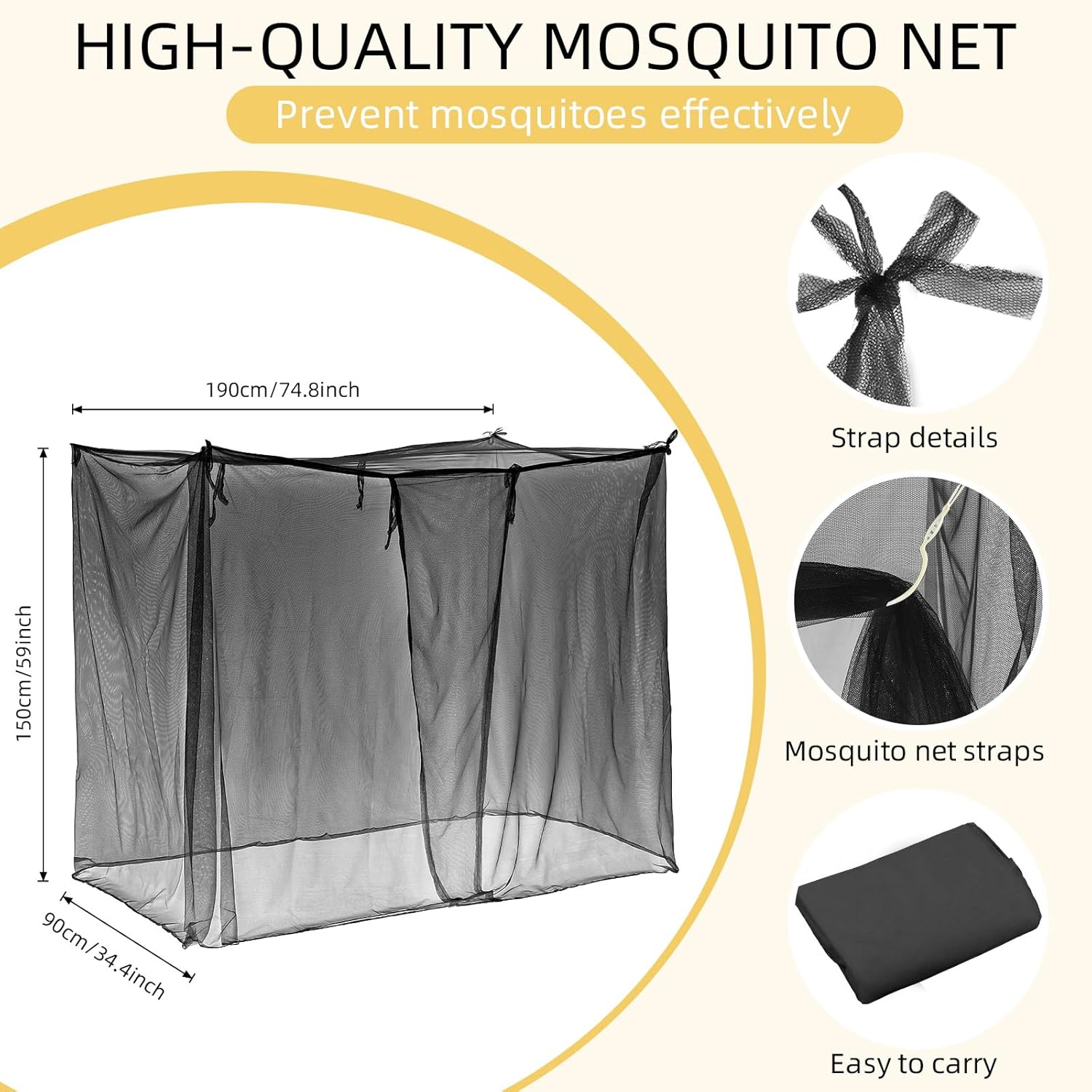 4 Corners Mosquito Net for Mosquiteros para Camas Bed Canopies Netting Bed Drapes Rectangular Mosquito Mesh for Camping Home Outdoor Travel(Black,L75 X W35.5 X H59 Inch,Opening)