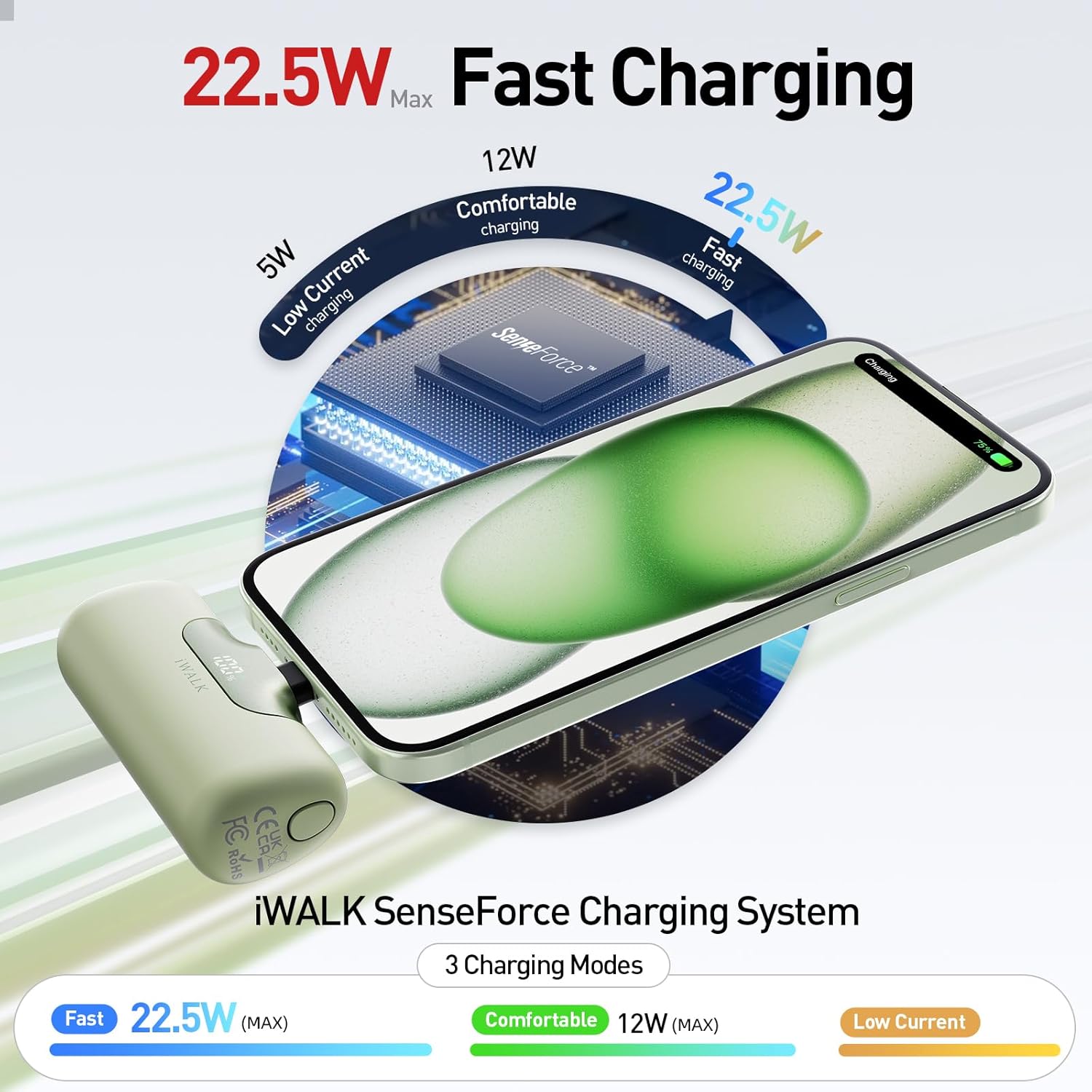 iWALK Portable Charger 5500mAh Next-Gen Small Power Bank 22.5W Fast Charging Battery USB-C Portable Phone Charger for iPhone 16/15 16 Plus 16 Pro Max iPad, Samsung Galaxy S25 S24 S23 Android, Green
