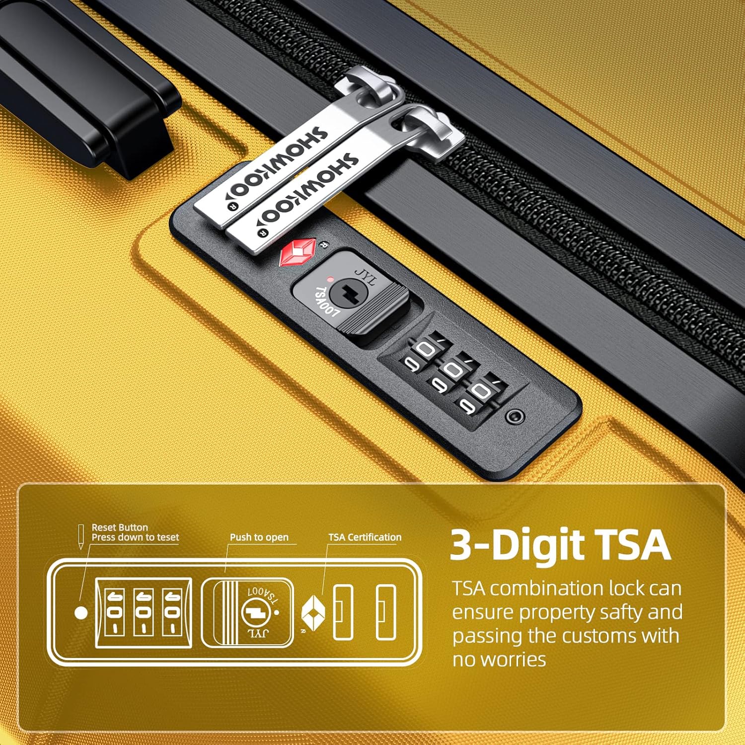 SHOWKOO Luggage Sets Expandable PC+ABS Durable Suitcase Sets Double Spinner Wheels TSA Lock Yellow 3pcs