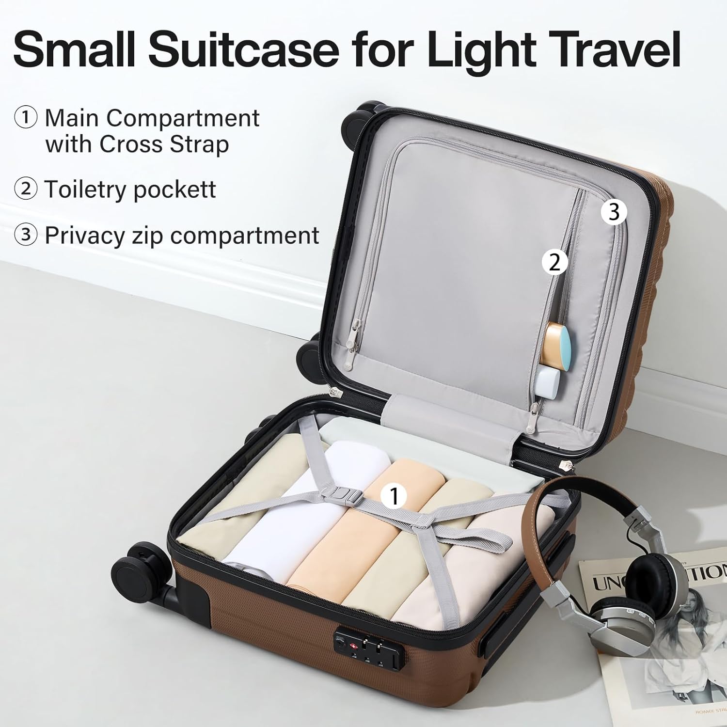 Hanke 14 Inch Underseat Carry On Luggage with Wheels Hard Shell Suitcases Lightweight Small Luggage for Weekender Mini Suitcase Carry On Bag Travel Luggage for Travel Rolling Suitcase.(Brown)