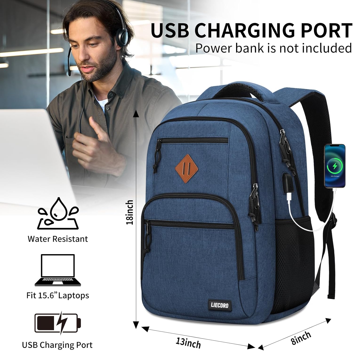 Blue Backpacks for Men, Backpack for School, School Backpack for Boys Teens, 15.6 inch Laptop Back Pack with USB Charging Port, College Book Bag, Business Work Travel Bookbag, mochilas para hombres
