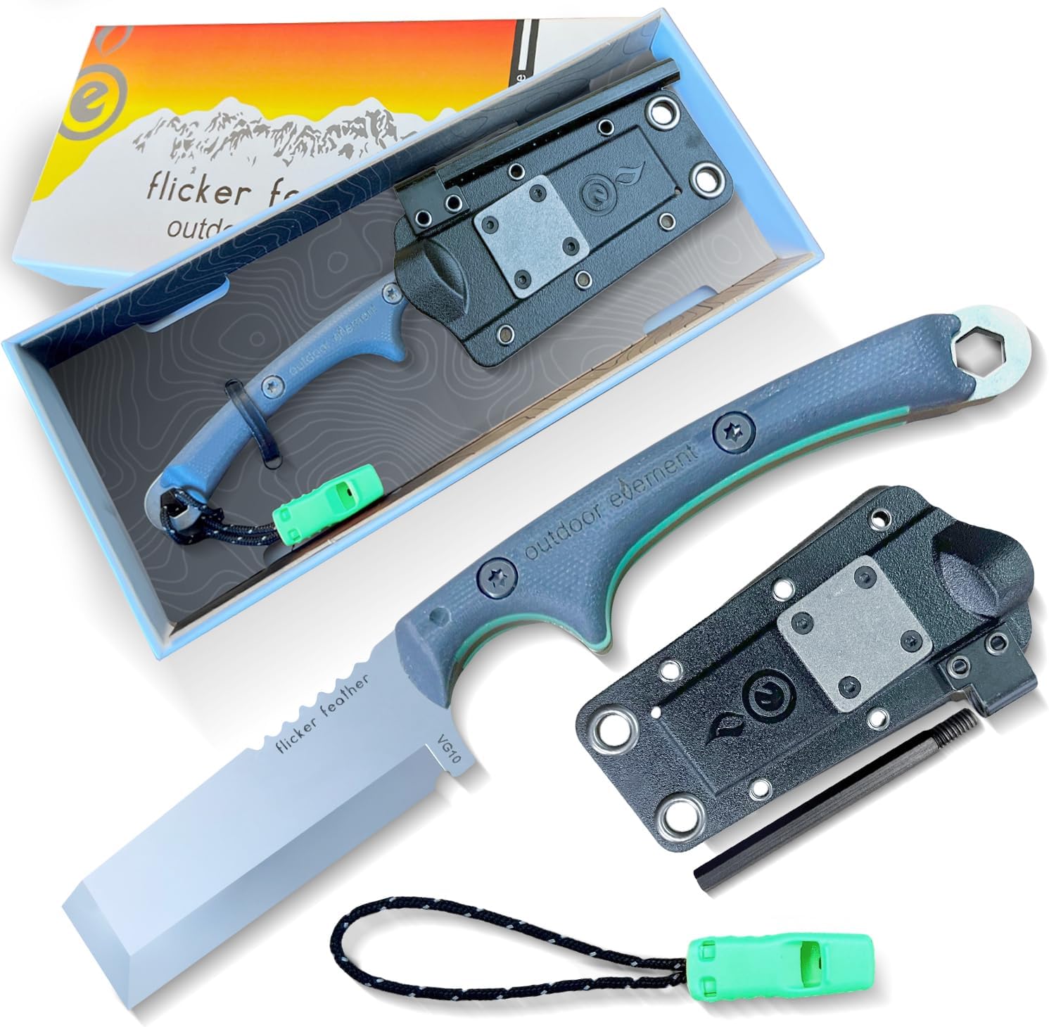OUTDOOR ELEMENT Flicker Feather Knife Wise Owl GLOW - Right-Handed Survival Chisel Blade for Camping, Hunting, Culinary Knives & Bushcraft - Fixed Blade with Sheath, Firestarter and Emergency Whistle