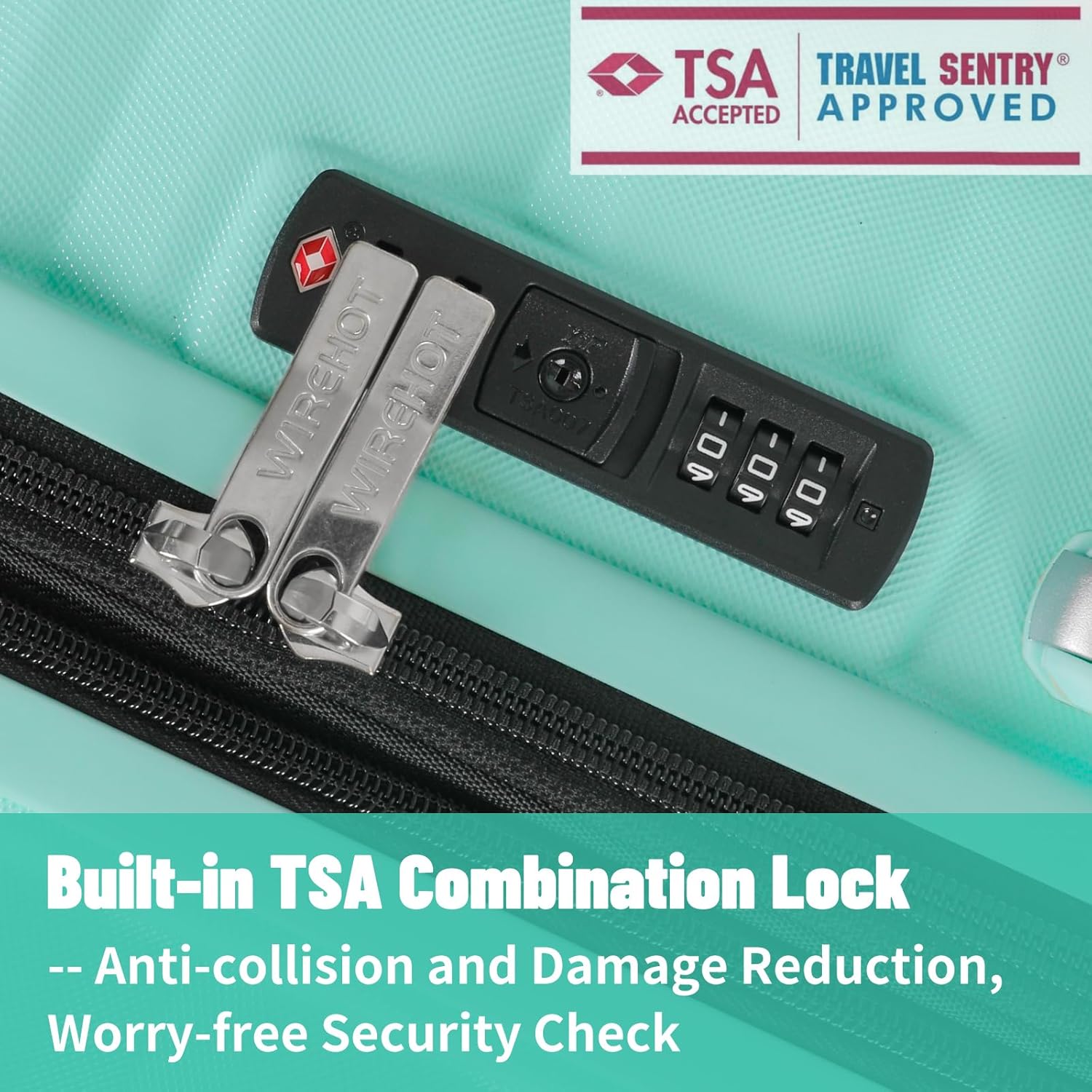Lightweight Luggage with Spinner Wheels & YKK Zipper, 3-Piece Suitcase ABS+PC Hardside Hard Shell Luggage Set with TSA Lock, Light Mint Green (20+24+28 inch)