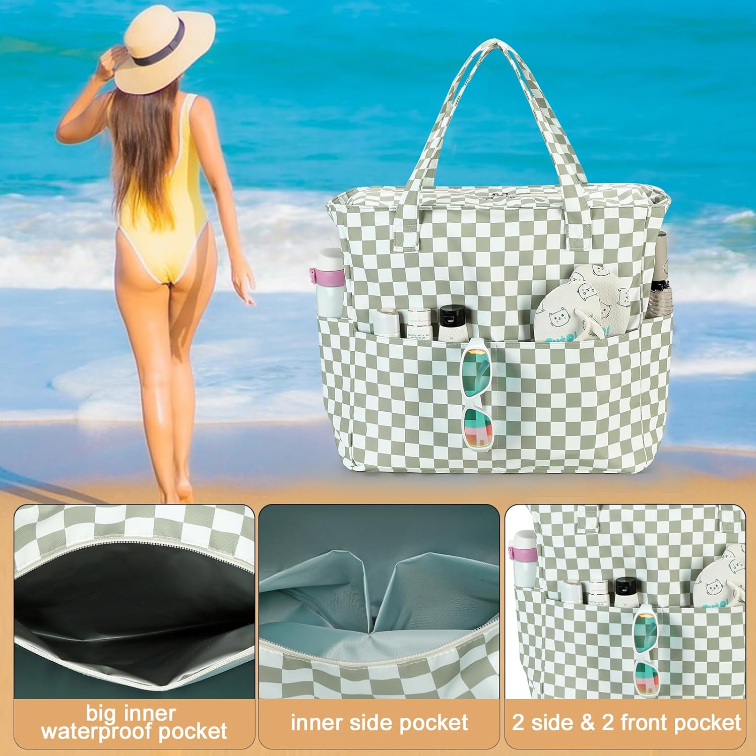 LEDAOU Beach Bag Waterproof Sandproof Women Tote Bag Pool Bag with Zipper for Gym Grocery Travel with Wet Pocket