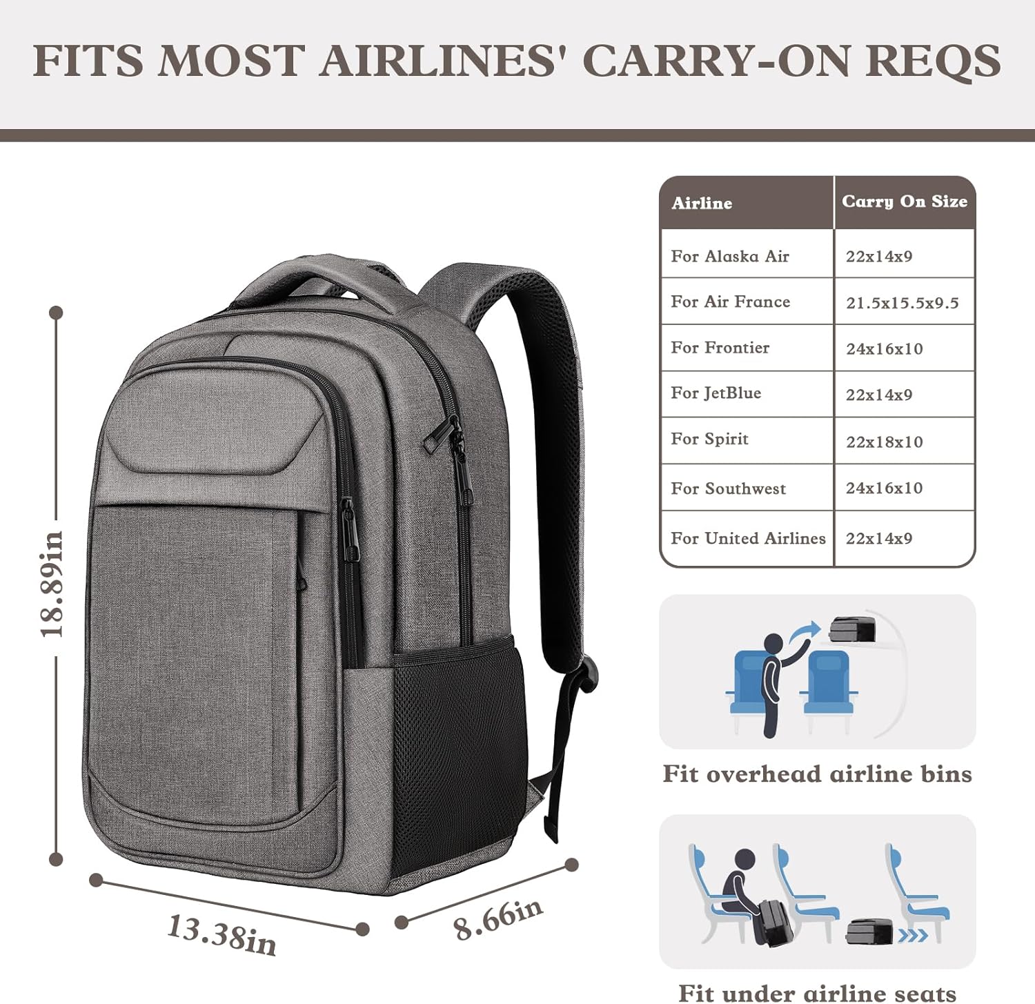 Travel Backpack, Large Travel Backpack, 17 Inch Laptop Bag, Water Resistant Durble Slim Casual Daypack College School Computer Bag Gift for Men & Women Fits 17.3 Inch Notebook, Grey