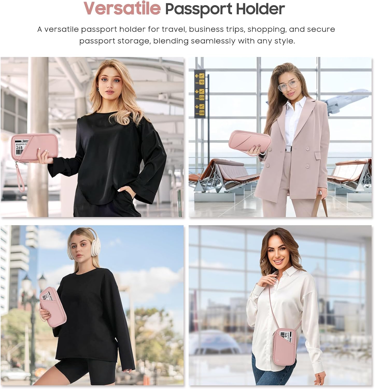 Travel Passport Wallets, Airtag Lightweight Family Passport Holder With RFID Blocking Passport Cover Case Waterproof Bag Document Organizer for Men and Women-pink