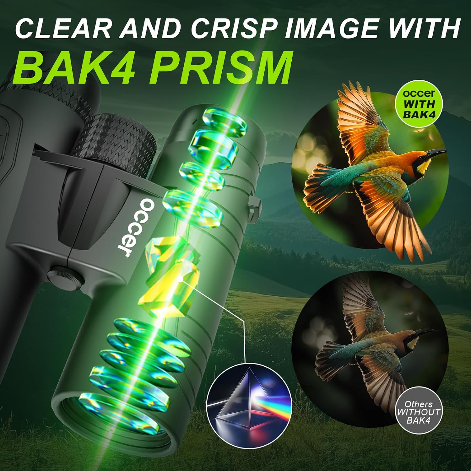 - 【15X Adult Binoculars with Steady Magnification】Compared to shaky 20x models, Occer's 15x magnification with 42mm objectives achieves perfect balance between stability and clarity, ideal for tracking moving targets like breaching whales or flying eagles.