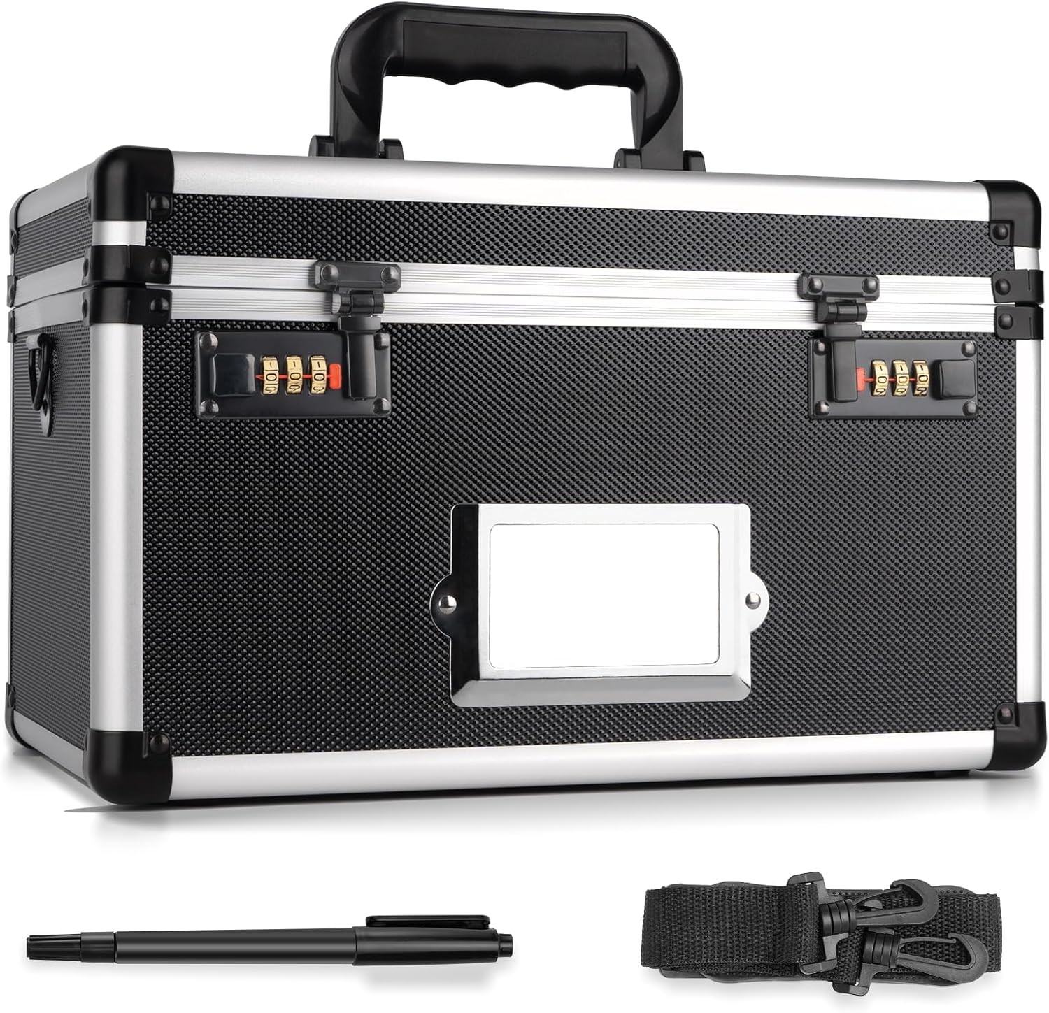 13.4 x 8 x 8.7 Inch Lockable Storage Box with Combination Lock, Portable Safe for Documents, Medicine, Cash & Valuables, Medicine Lock Box with Label Slot for Home, Office & Travel - Black