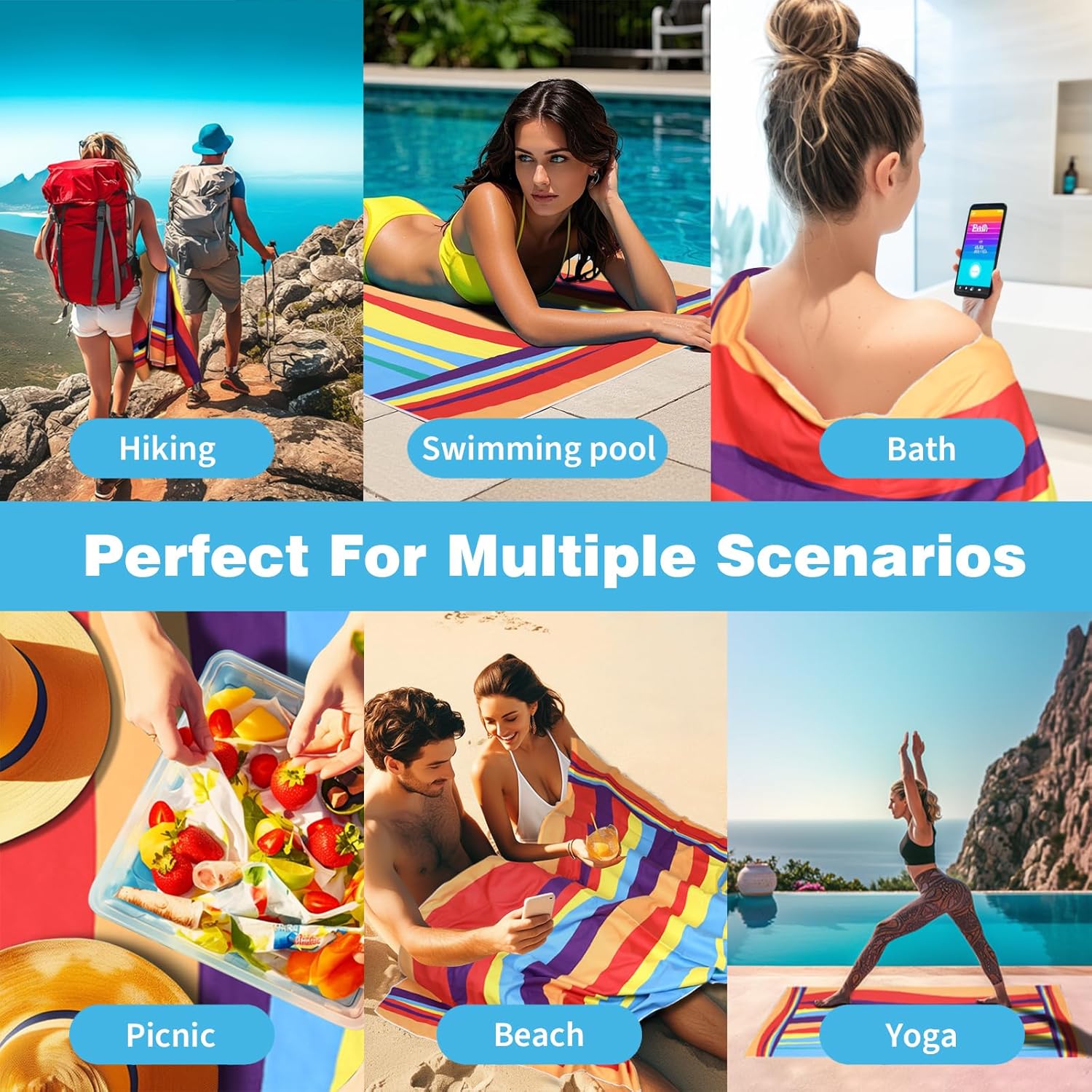- Multi-purpose: Serves as a travel towel, picnic blanket, yoga mat, bath towel, gym essential and camping companion. Ideal for beaches, pools, saunas or outdoor adventures – one towel does it all!