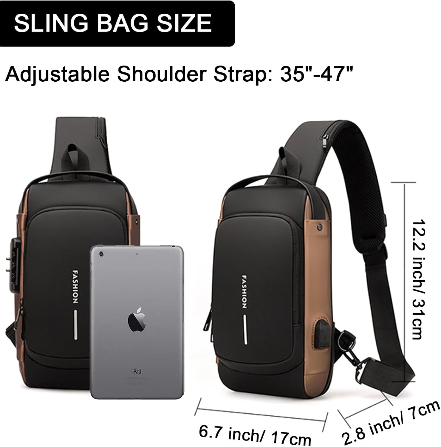 - Roomy & Organized Pockets: Dimension: 12.2 x 6.7 x 2.8 inches (H x L x W); The sling bag contains 1 x Main zipper pockets (Includes 2 x inner open pockets + 1 x inner zipper pocket), 1 x Side zipper pocket, 1 x Rear zipper pocket, 1 x Shoulder strap card pocket, you'll have plenty of space to store all your essentials, including your ipad, wallet, phone, earphones and cards, etc