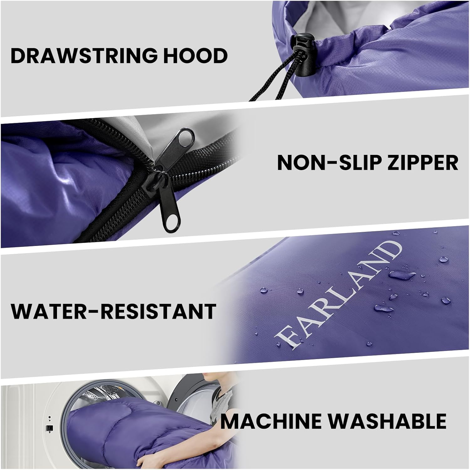 FARLAND Sleeping Bags 30℉ for Adults Teens Kids with Compression Sack Portable and Lightweight for 3-4 Season Camping, Hiking,Waterproof, Backpacking and Outdoors