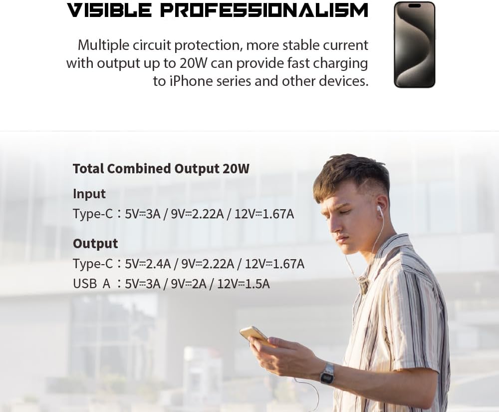 - โ Blazing Fast Charging โ 20W output for rapid power-ups anytime, anywhere.