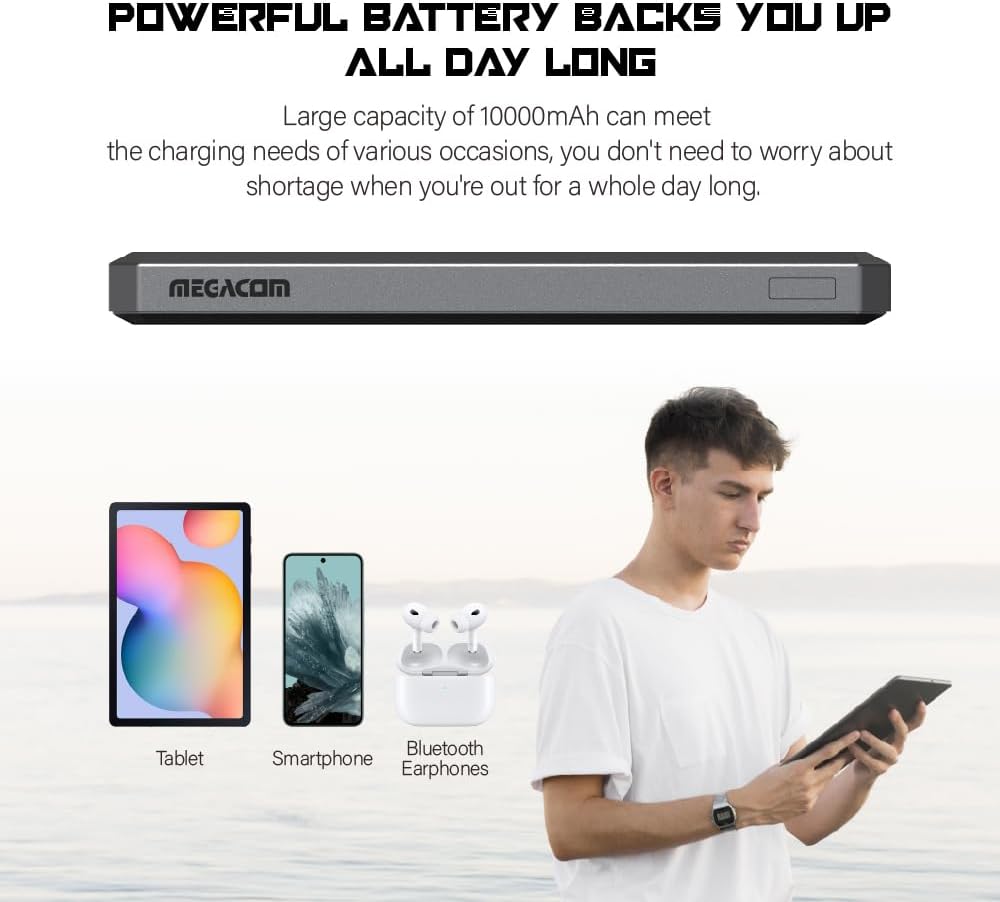 - โ High Capacity โ 10,000mAh to keep your devices powered all day.
