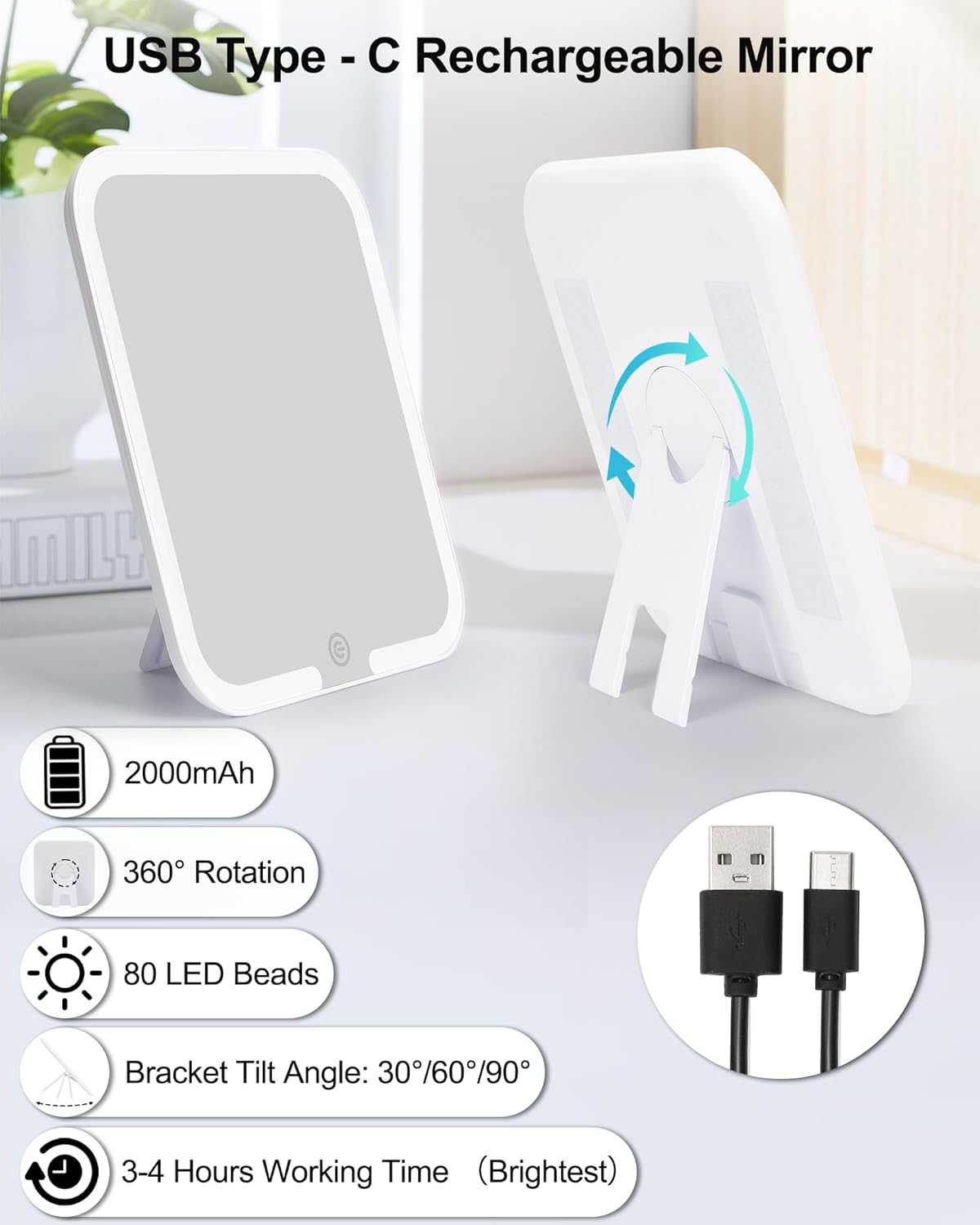 - What You Get: Makeup bag, 6 Pcs adjustable dividers, USB rechargeable makeup mirror (80 LED Beads, 2000mAh), USB charging cable, worry-free 12-month warranty and our friendly customer service. Perfect gift idea for any woman, this cosmetic bags is perfect for bridesmaid, daughters, granddaughters, mothers, wife, friends, and teachers.