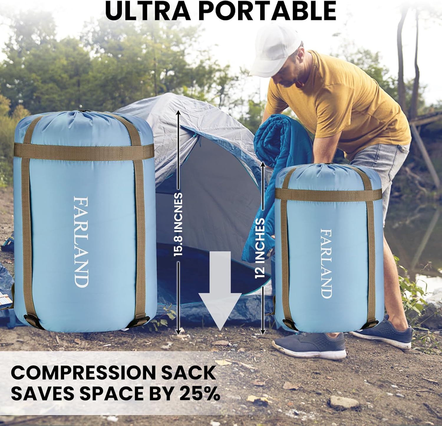 FARLAND Sleeping Bags 30℉ for Adults Teens Kids with Compression Sack Portable and Lightweight for 3-4 Season Camping, Hiking,Waterproof, Backpacking and Outdoors