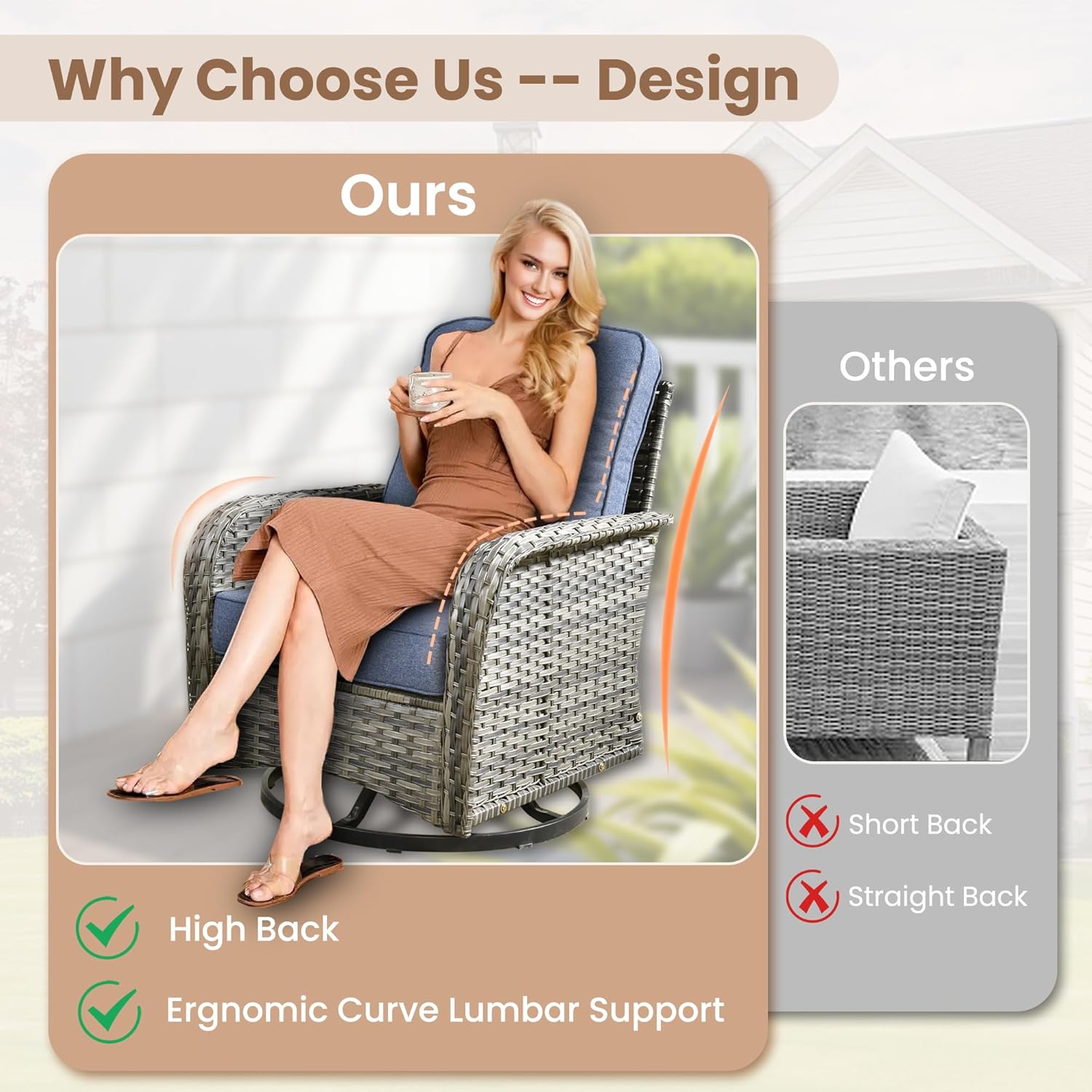 HOOOWOOO Patio Furniture Set,5 Pieces Outdoor Conversation Set,All Weather Wicker Loveseat Sofa Set with High Back Swivel Rocking Chairs Tables,Denim Blue